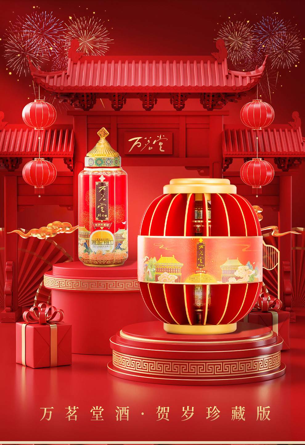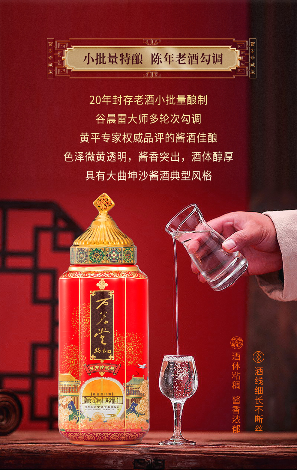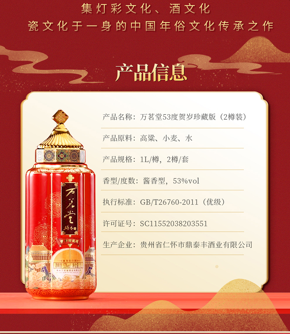 万茗堂53度贺岁珍藏版酱香型白酒1000ml*2(2樽装)