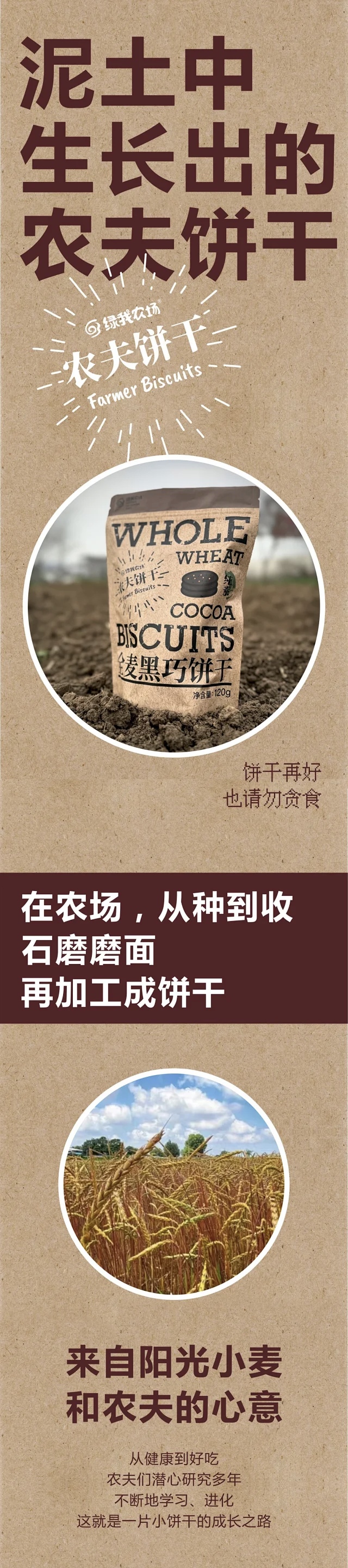 绿我农场位于陕西关中腹地,日照充足,自古便是优质谷物的主产区。农场通过实践澳洲德米特活力农耕农法,改良土壤,优选品种,悉心耕作,建立起成熟的农耕操作体系。农场纯手工优选老品种谷物进行种植,主原料如此好,饼干这件事儿还不是轻轻松松嘛!