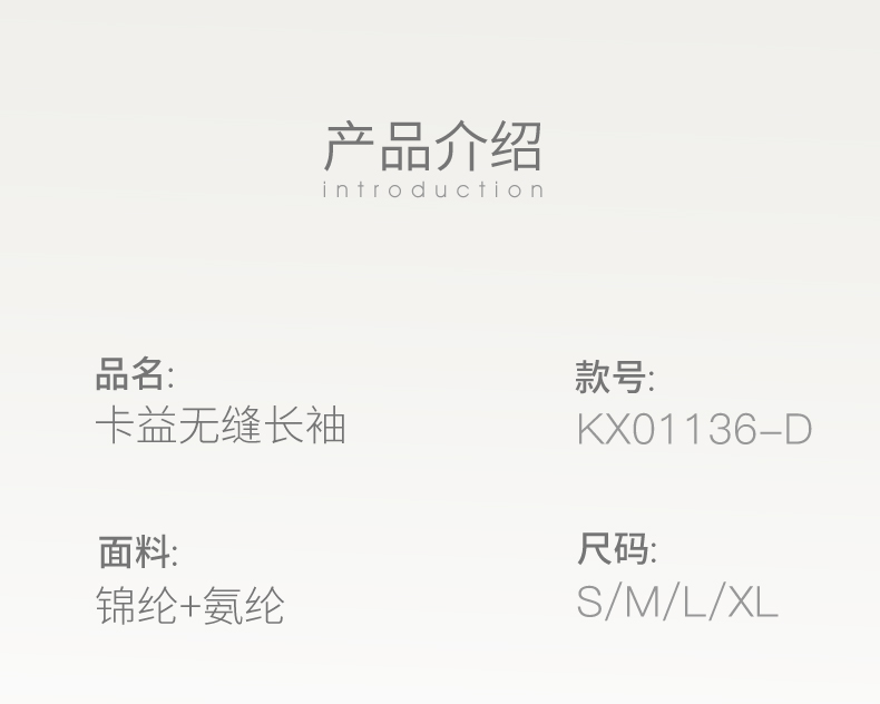 卡益长袖不可插胸垫KX01136 短款