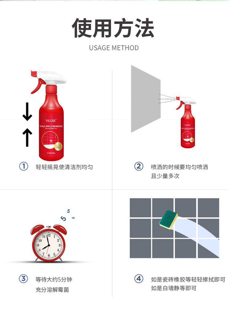 【墙体除霉变新屋】英国vilosi 除霉喷剂 500ml/瓶 99.9%抑菌,无毒无刺激,科学配方,溶菌酶降解,温和分解霉斑不伤物体,长效防霉,一瓶多用