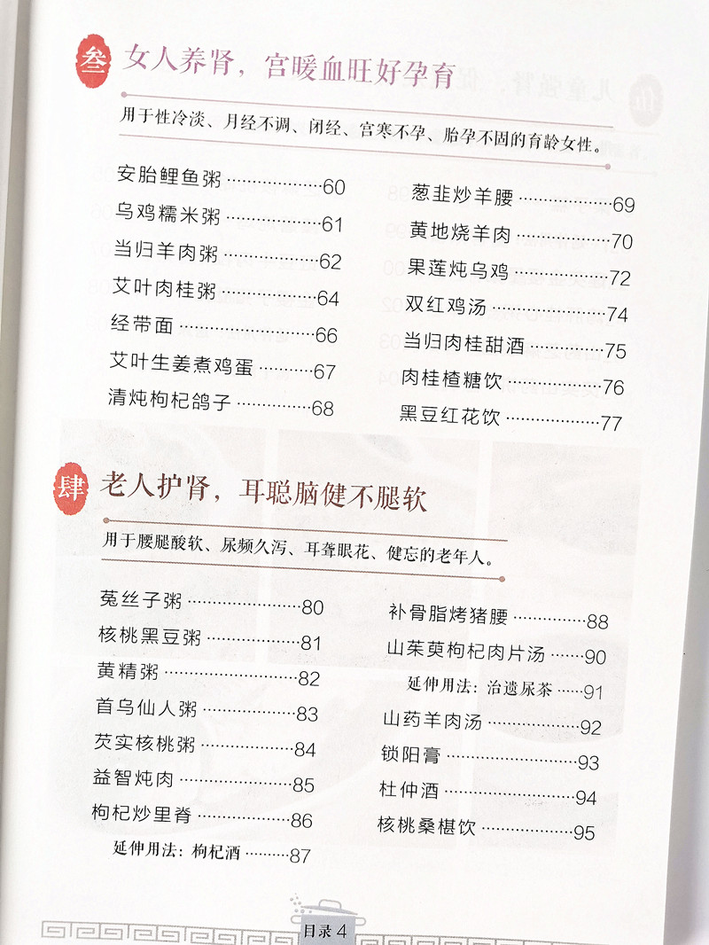 取材以日常饮食中常见的食材及药食两用材料(以卫生部规定的名单为准)为主,尽量不出现平时不易买到、昂贵珍奇的材料。做法均是现代家庭简单易行的,古方的做法可以根据现代生活的条件而有所改良和简化,保证可操作性。