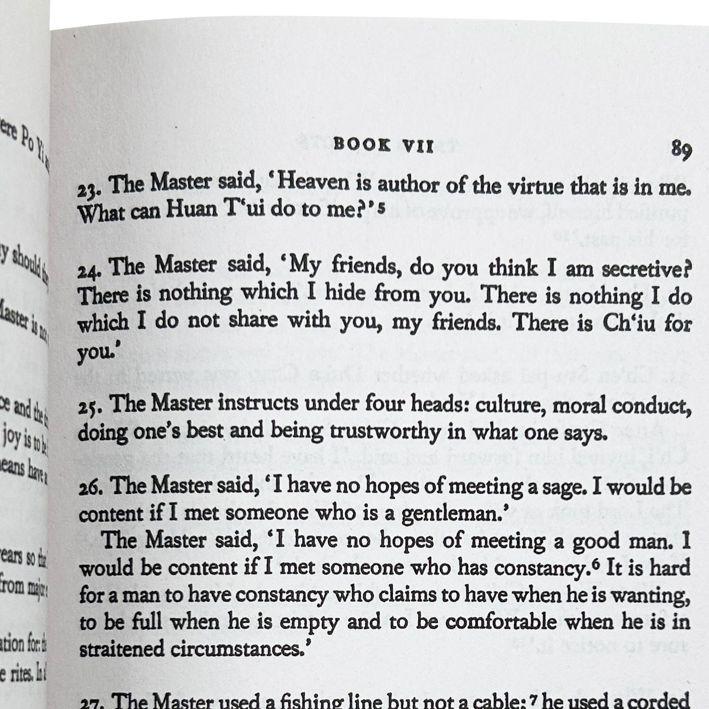 The Analects express a philosophy, or a moral code, by which Confucius, one of the most humane thinkers of all time, believed everyone should live. Upholding the ideals of wisdom, self-knowledge, courage and love of one's fellow man, he argued that the pursuit of virtue should be every individual's supreme goal. And, while following the Way, or the truth, might not result in immediate or material gain, Confucius showed that it could nevertheless bring its own powerful and lasting spiritual rewards.