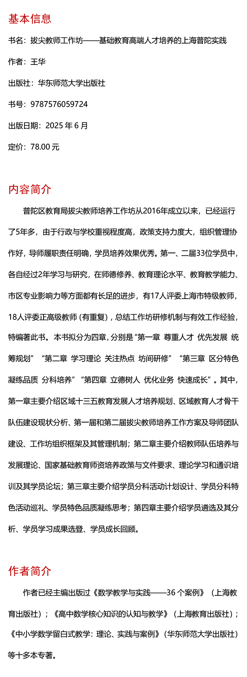 拔尖教师工作坊 基础教育高端人才培养的上海普陀实践 王华