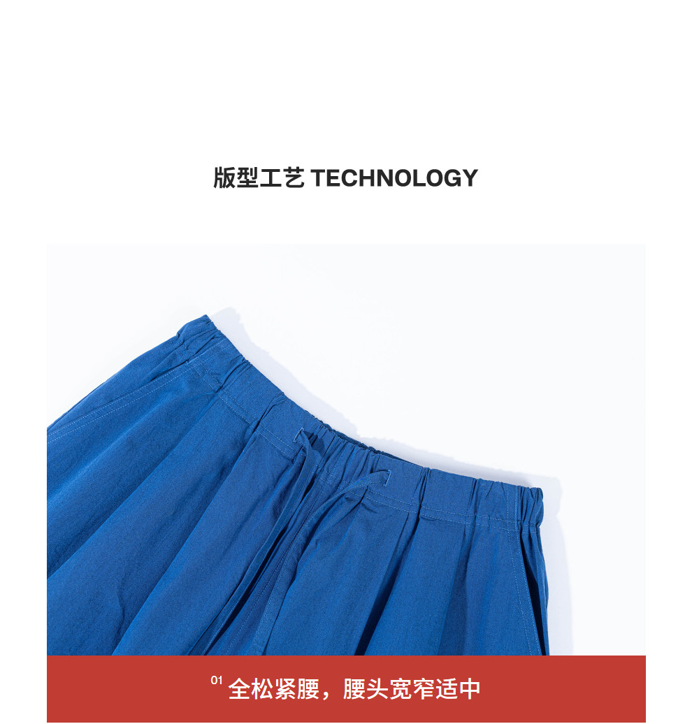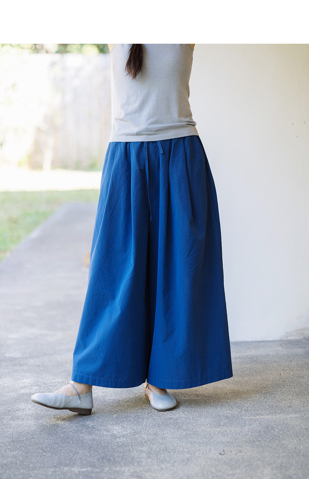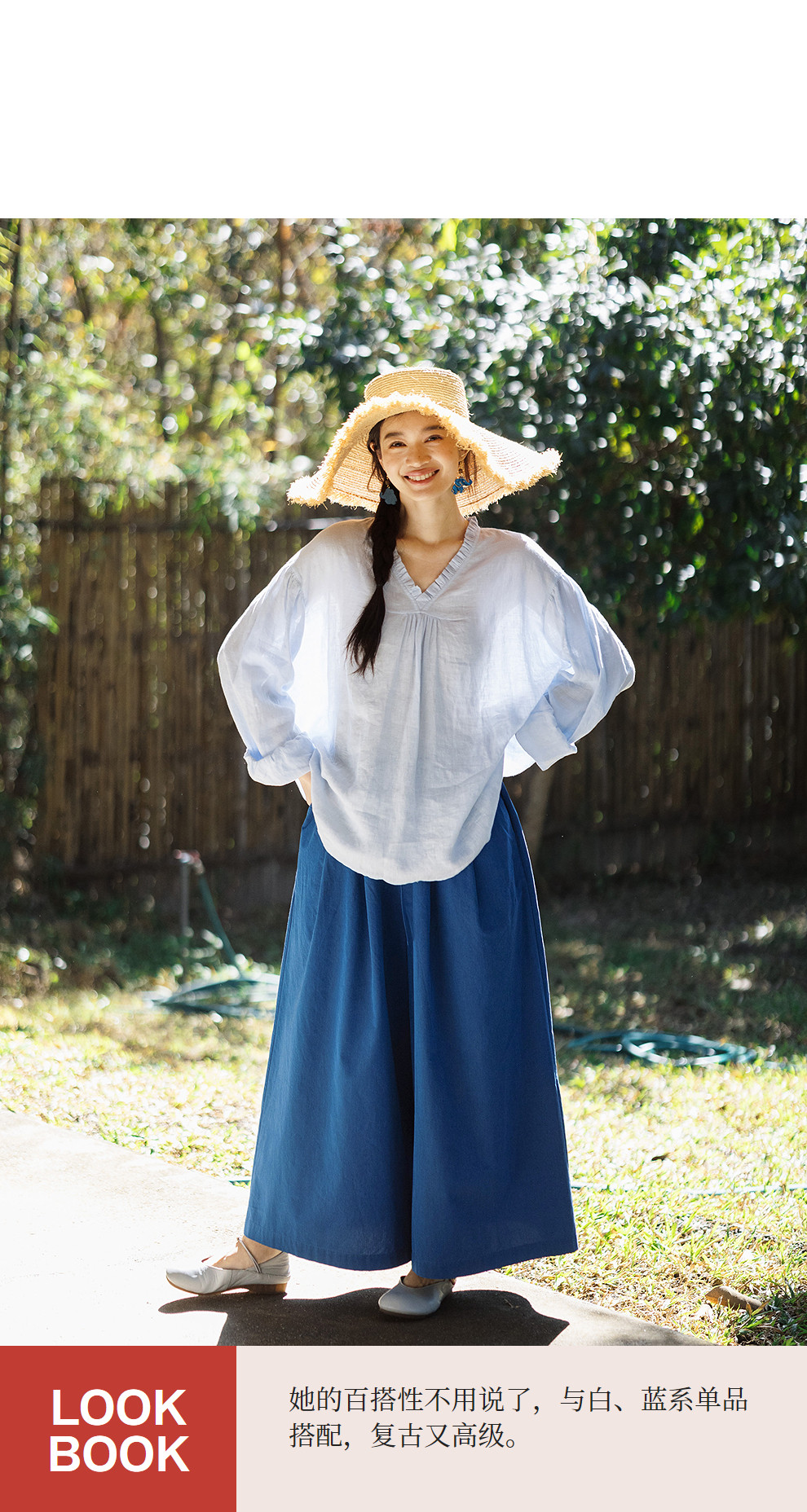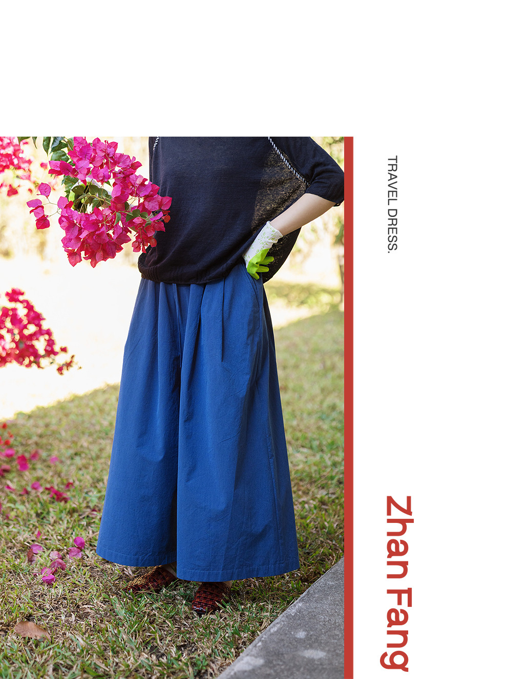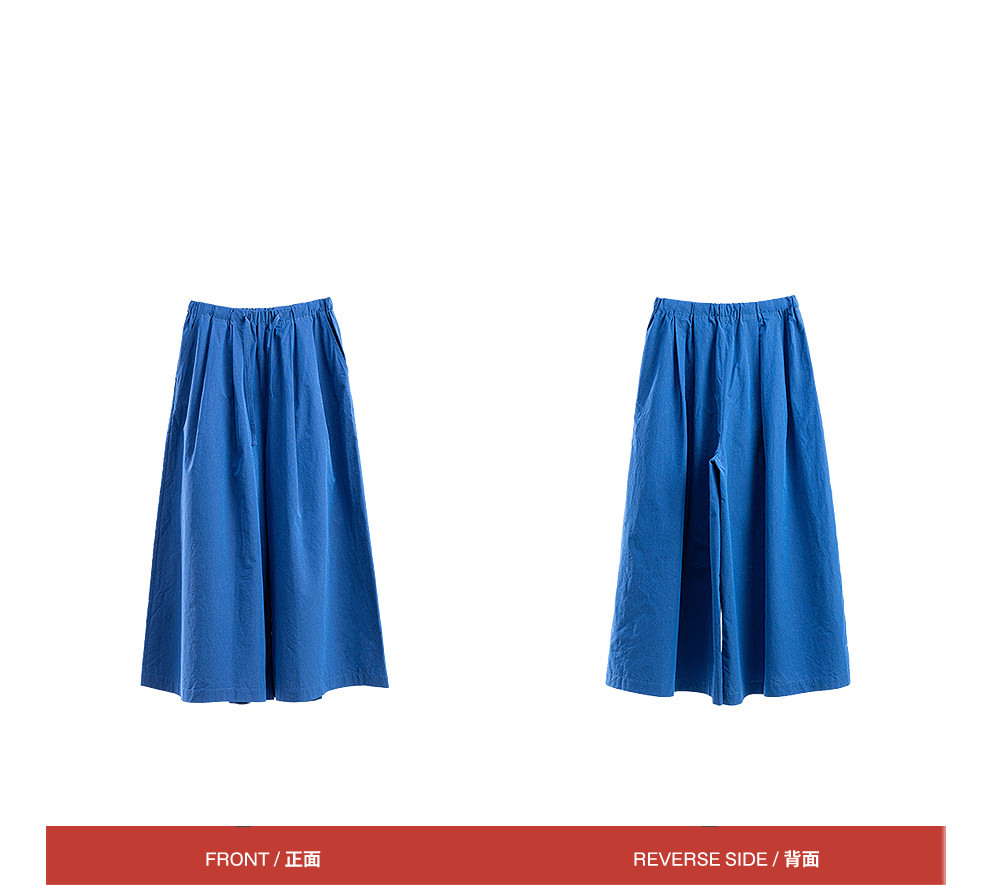 绽放113朵/蓝-艺术家*纯棉色织蓝宽松帅气阔腿裤全腰松紧百搭长裤