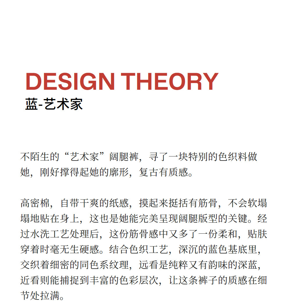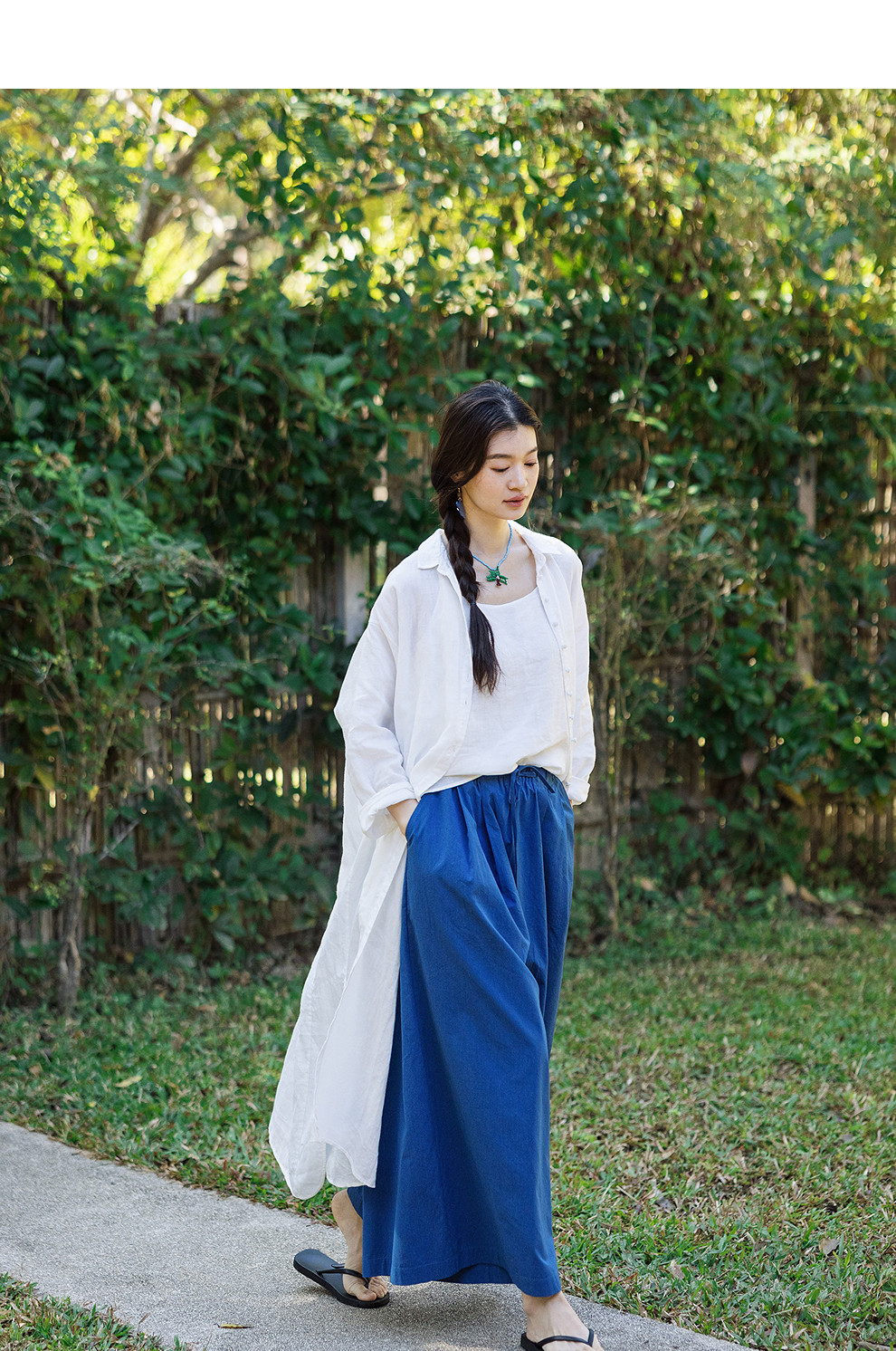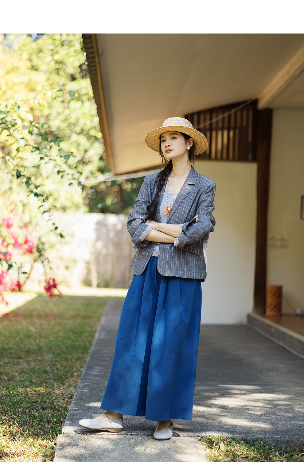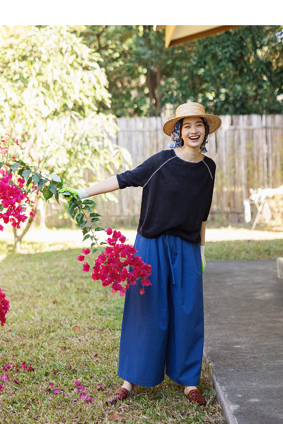 绽放113朵/蓝-艺术家*纯棉色织蓝宽松帅气阔腿裤全腰松紧百搭长裤