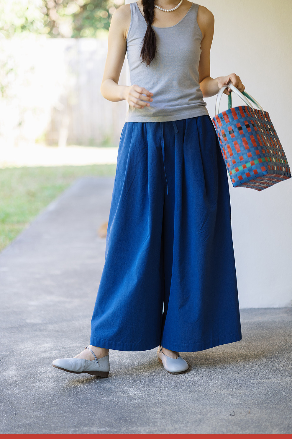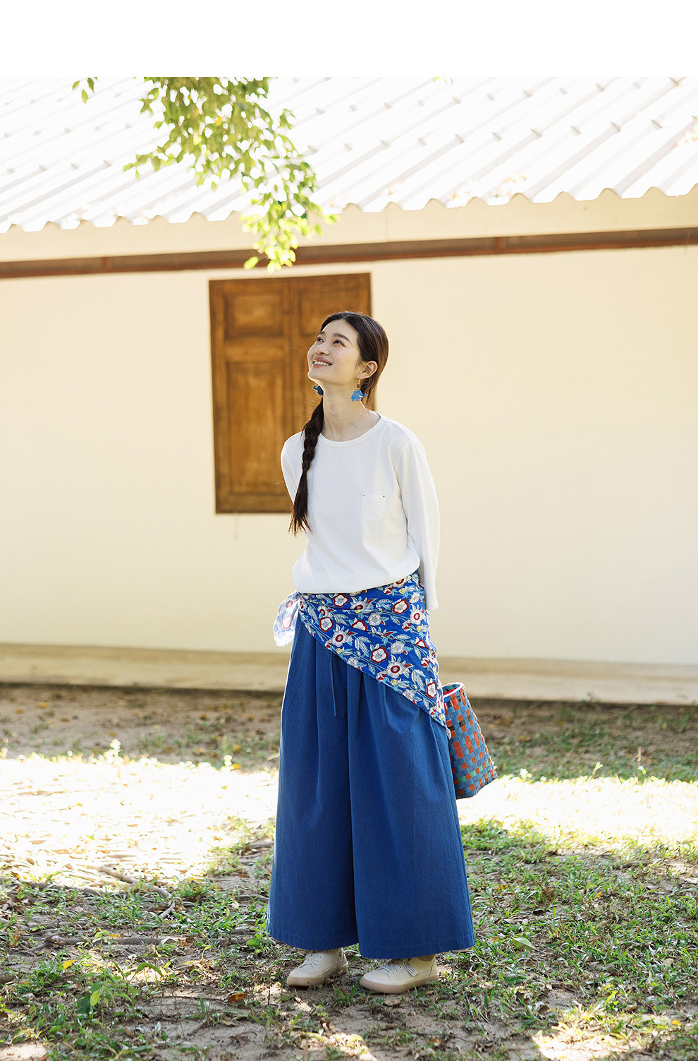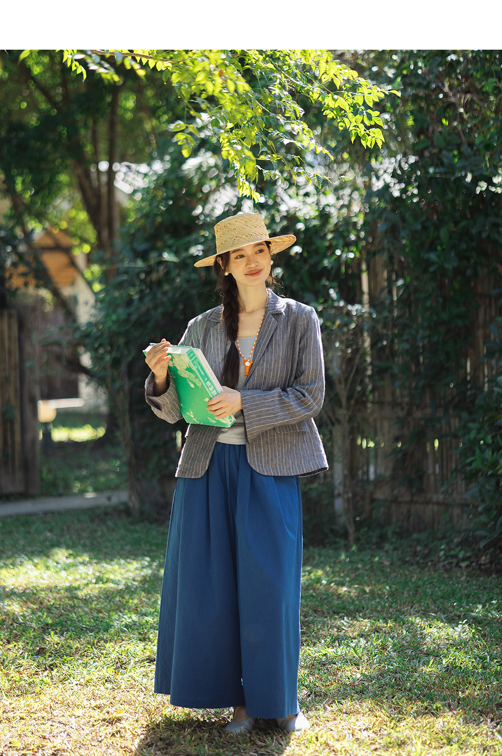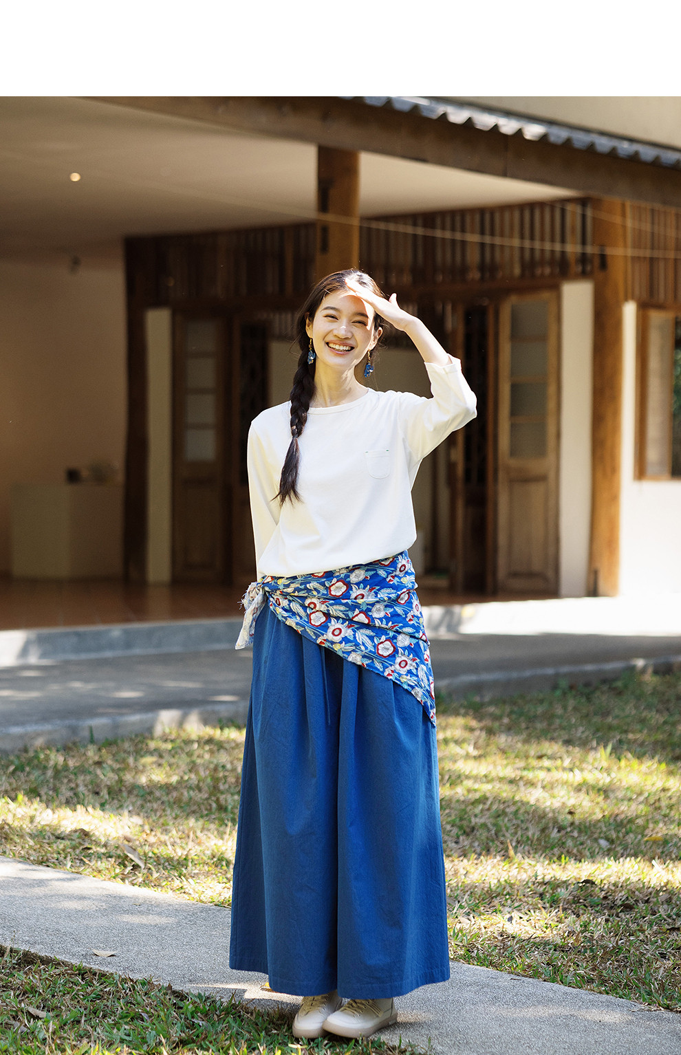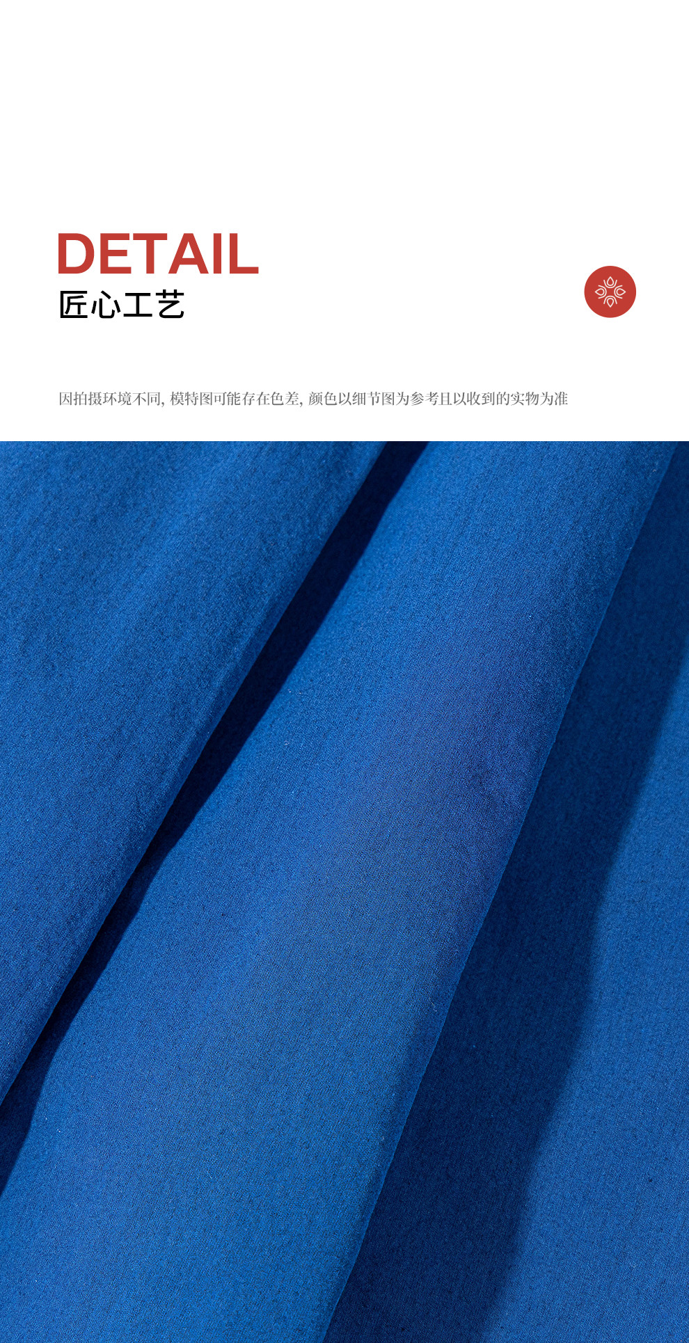 绽放113朵/蓝-艺术家*纯棉色织蓝宽松帅气阔腿裤全腰松紧百搭长裤