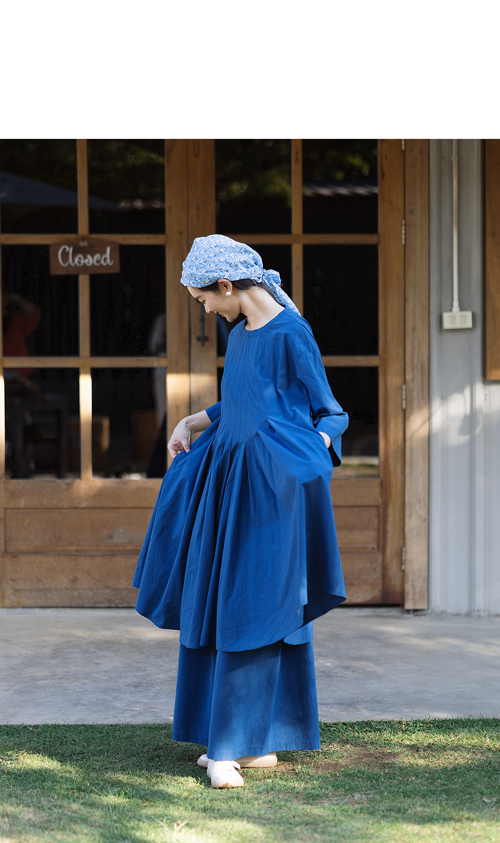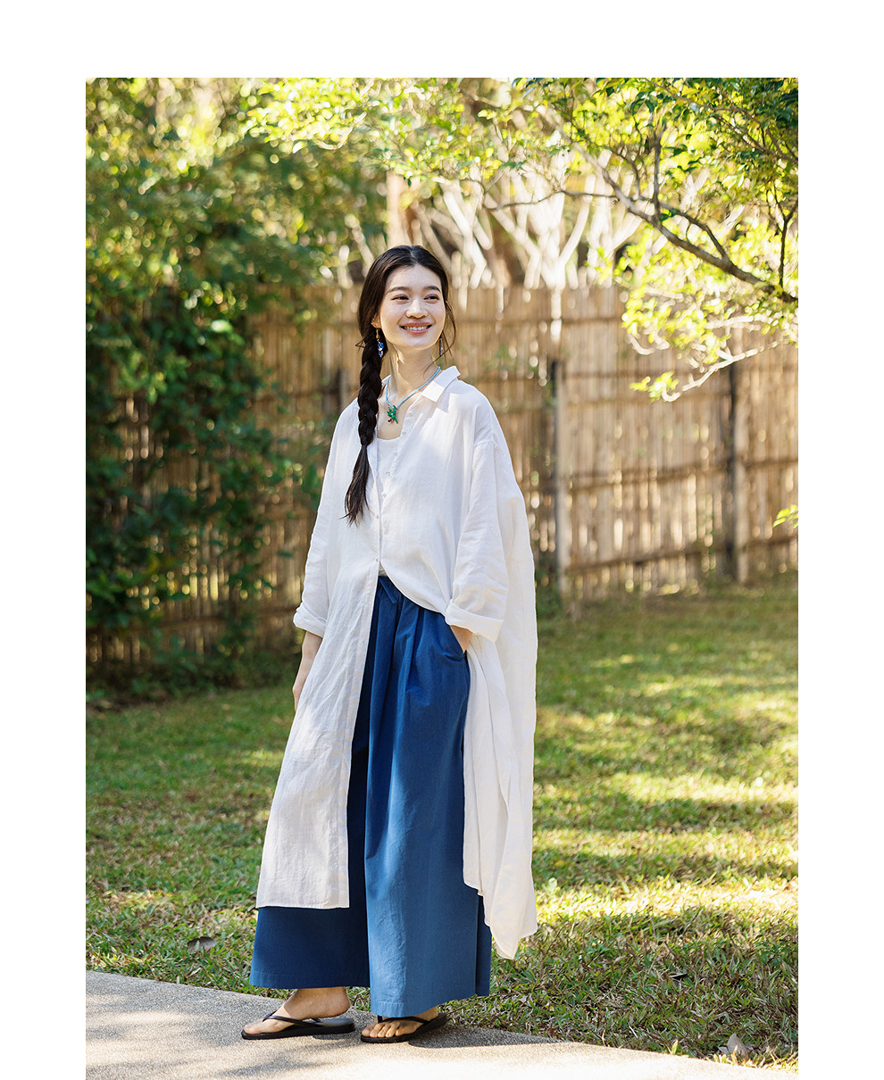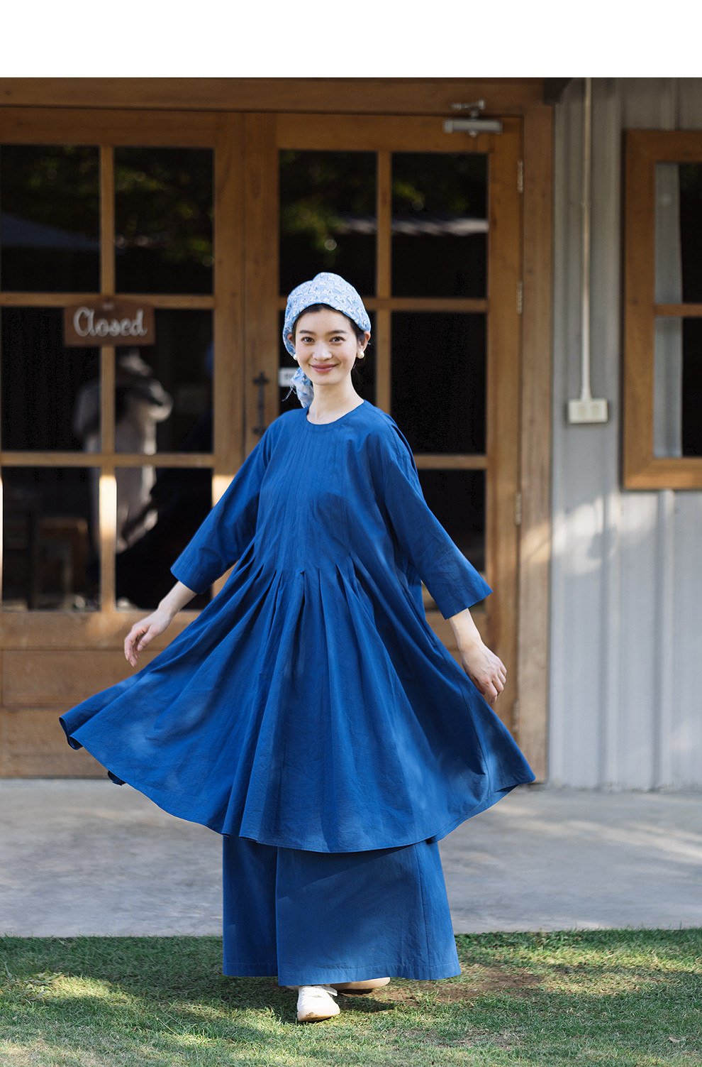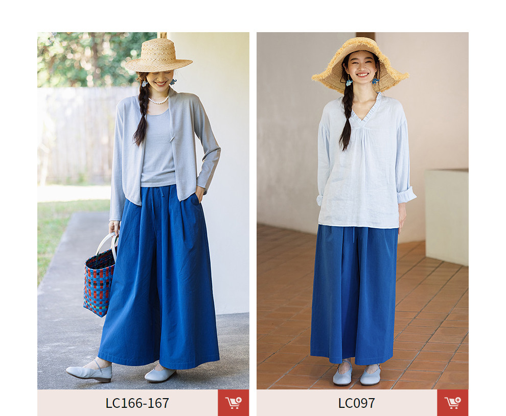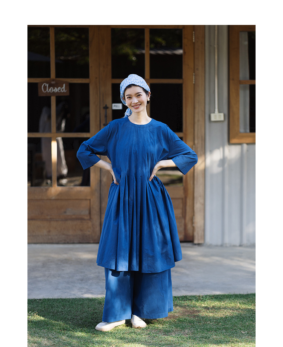 绽放113朵/蓝-艺术家*纯棉色织蓝宽松帅气阔腿裤全腰松紧百搭长裤