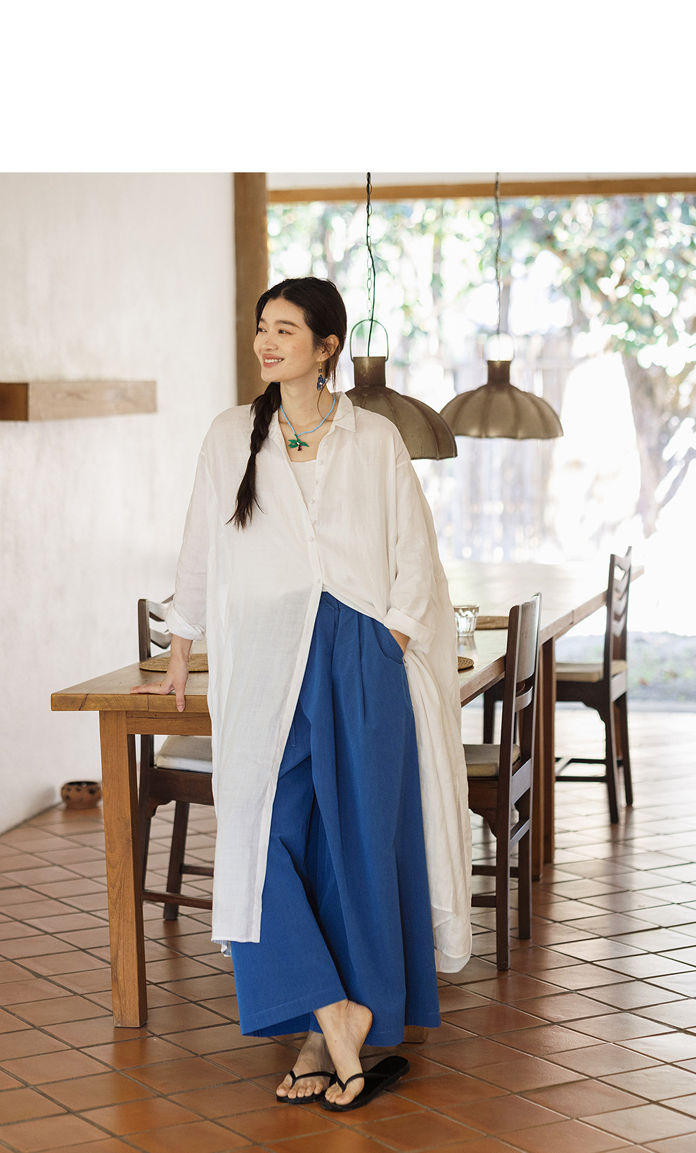以天然亚麻为载体,融合热烈色彩与自在剪裁为身在城市、心怀远方的女性提供兼具美学与舒适的旅行着装
