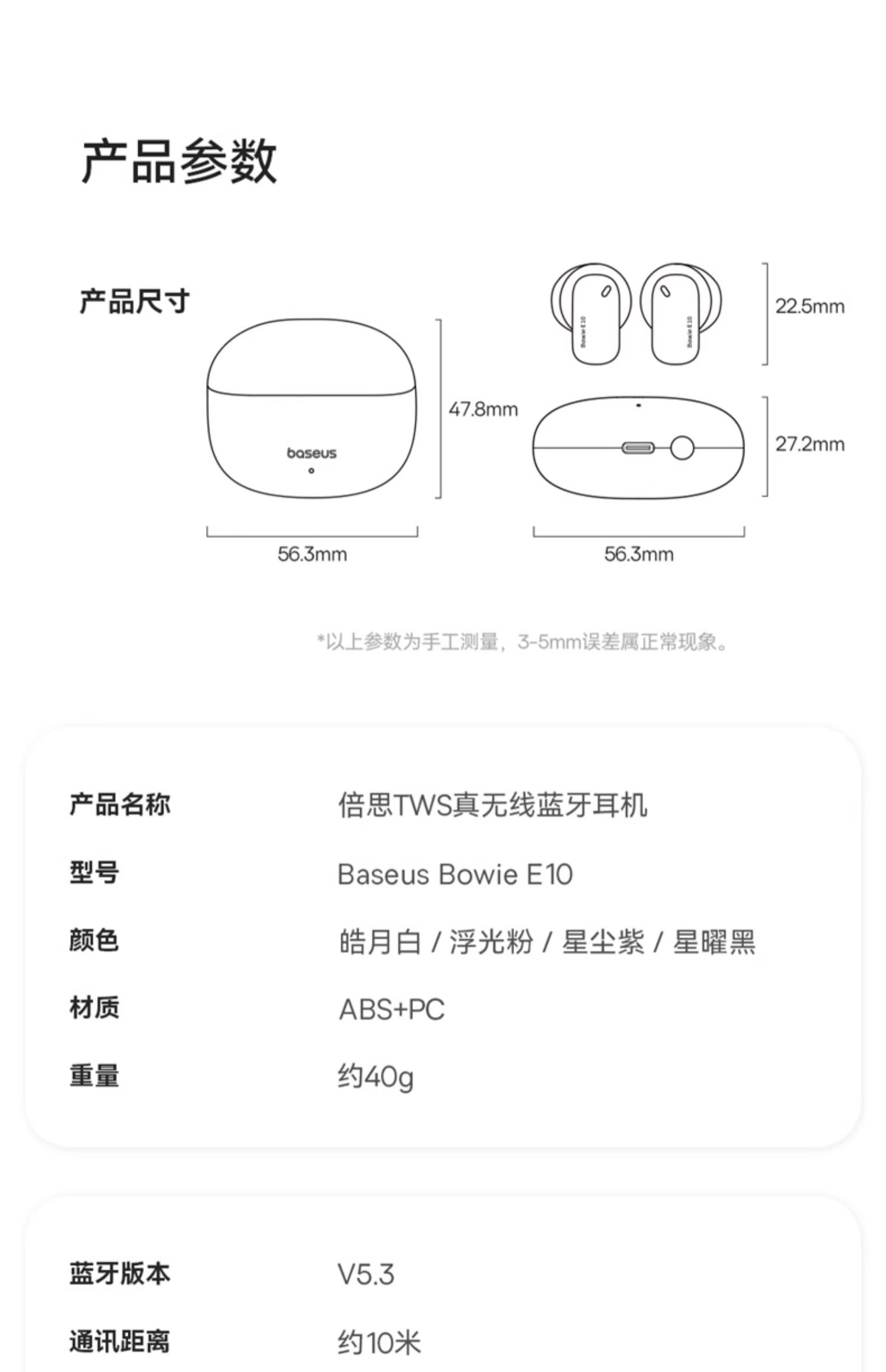 倍思 Bowie系列 E10 TWS真无线蓝牙耳机