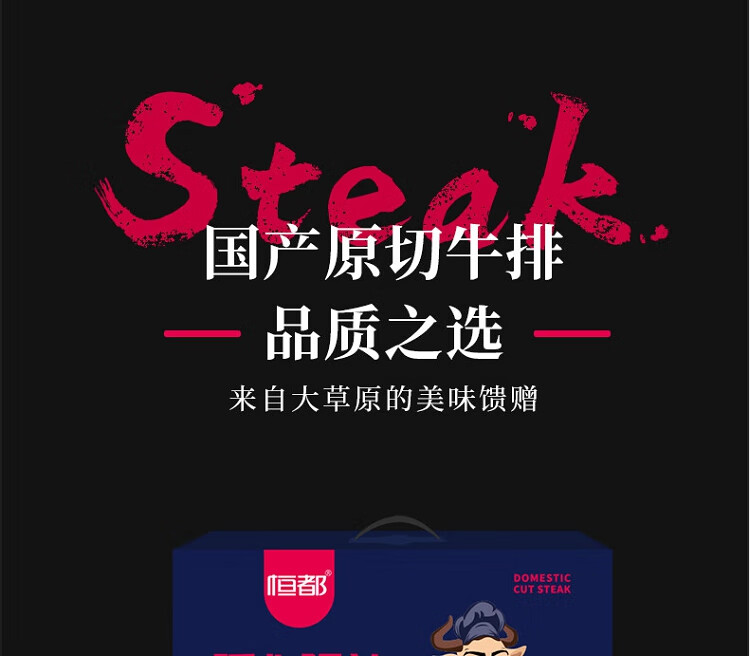 恒都 国产原切谷饲牛排礼盒D款1800g