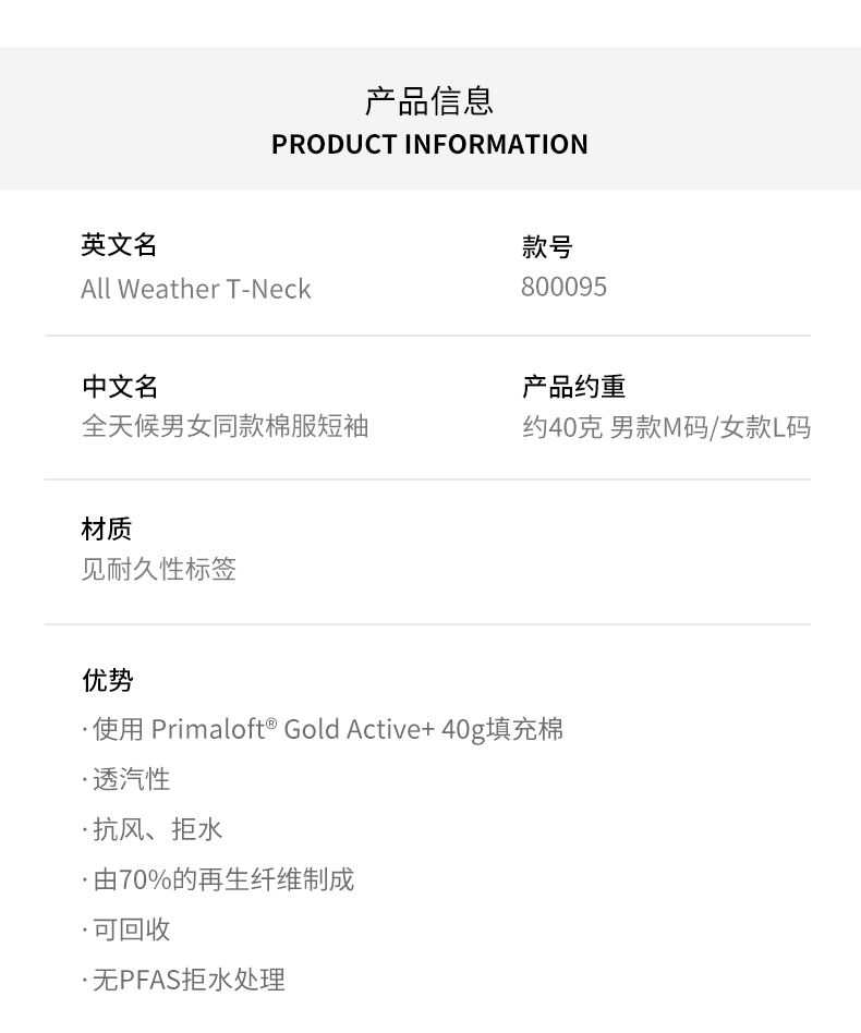HOUDINI胡丁尼 All Weather T-Neck 全天候 男女款户外短袖棉服800095
