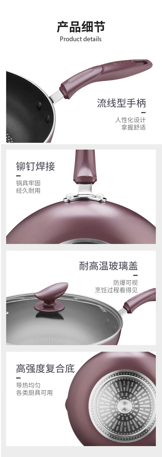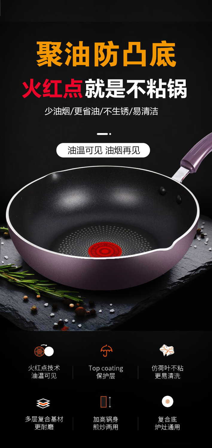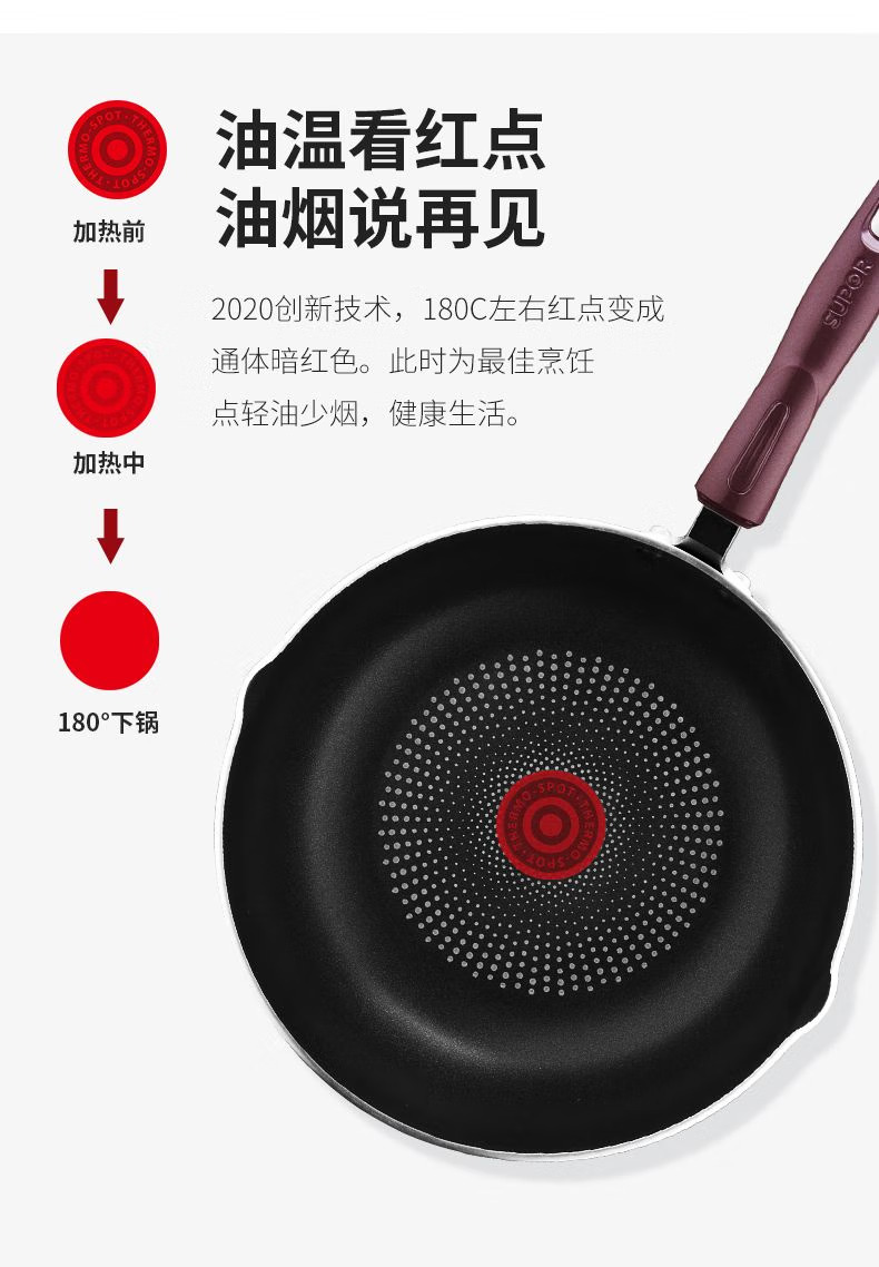 苏泊尔(SUPOR)炒锅不粘锅30cm炒菜锅轻量火红点无烟锅电磁炉燃气灶通用PC30QL1