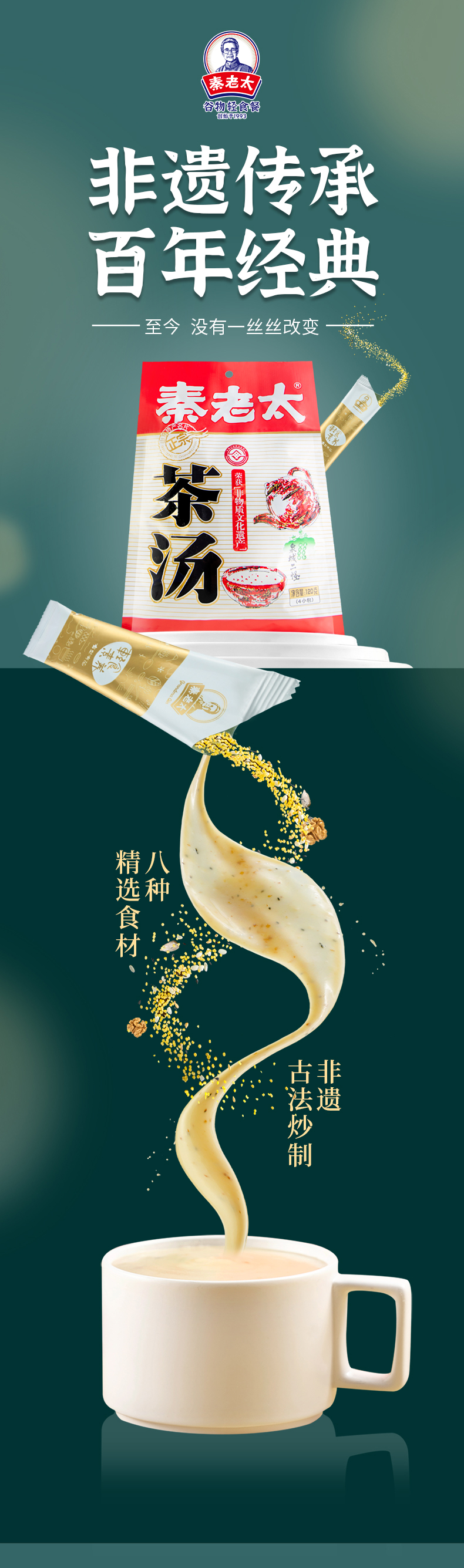 - 秦老太创始于1993年,专注谷物轻食餐。秦老太茶汤,2012年被正式授予非物质文化遗产。进入新时代,秦老太人怀揣匠心精神,以 “为家人制造食品”为理念,传承中华食养文化!