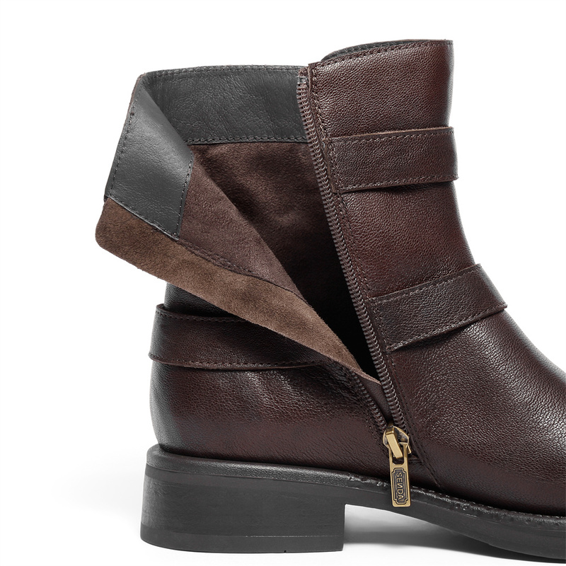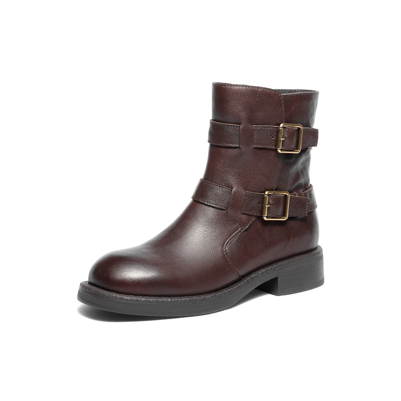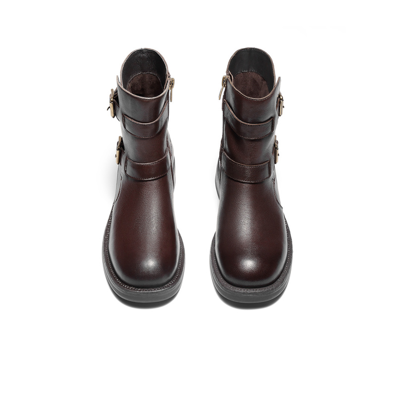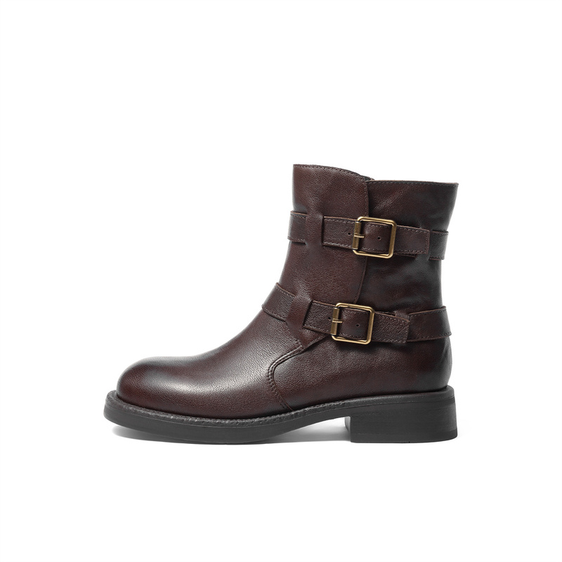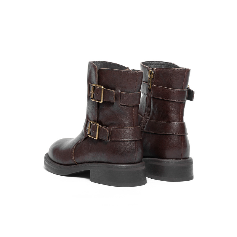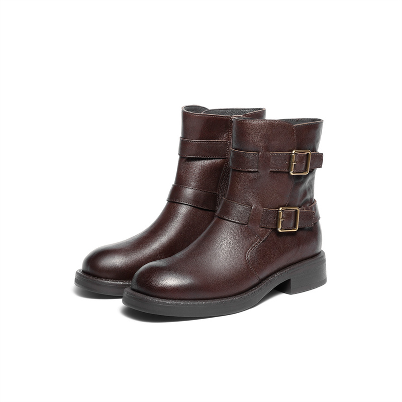 【云粉节】BF楼 森达羊皮复古西部靴2025冬季新款皮带扣机车风中筒靴XTP01吊牌价1299活动价639