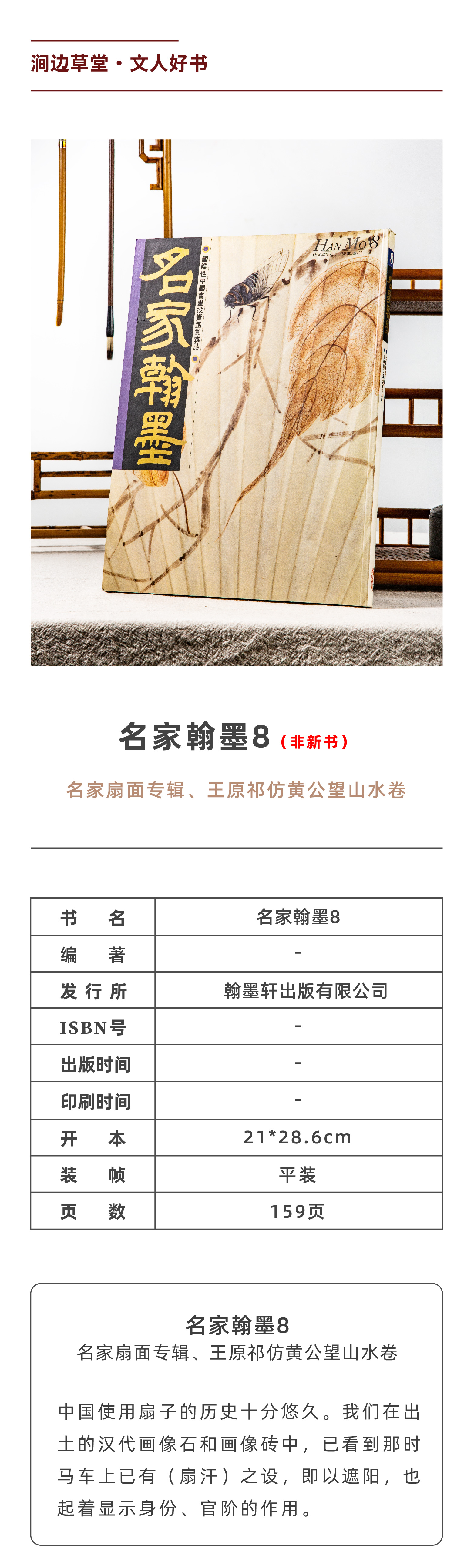 【绝版好书】《名家翰墨8-名家扇面专辑、王原祁仿黄公望山水卷》16开160页,1990年香港翰墨轩初版