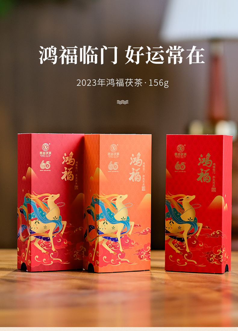 鸿福 湘益茯茶 茯砖茶 六十五周年厂庆纪念产品 468g/盒