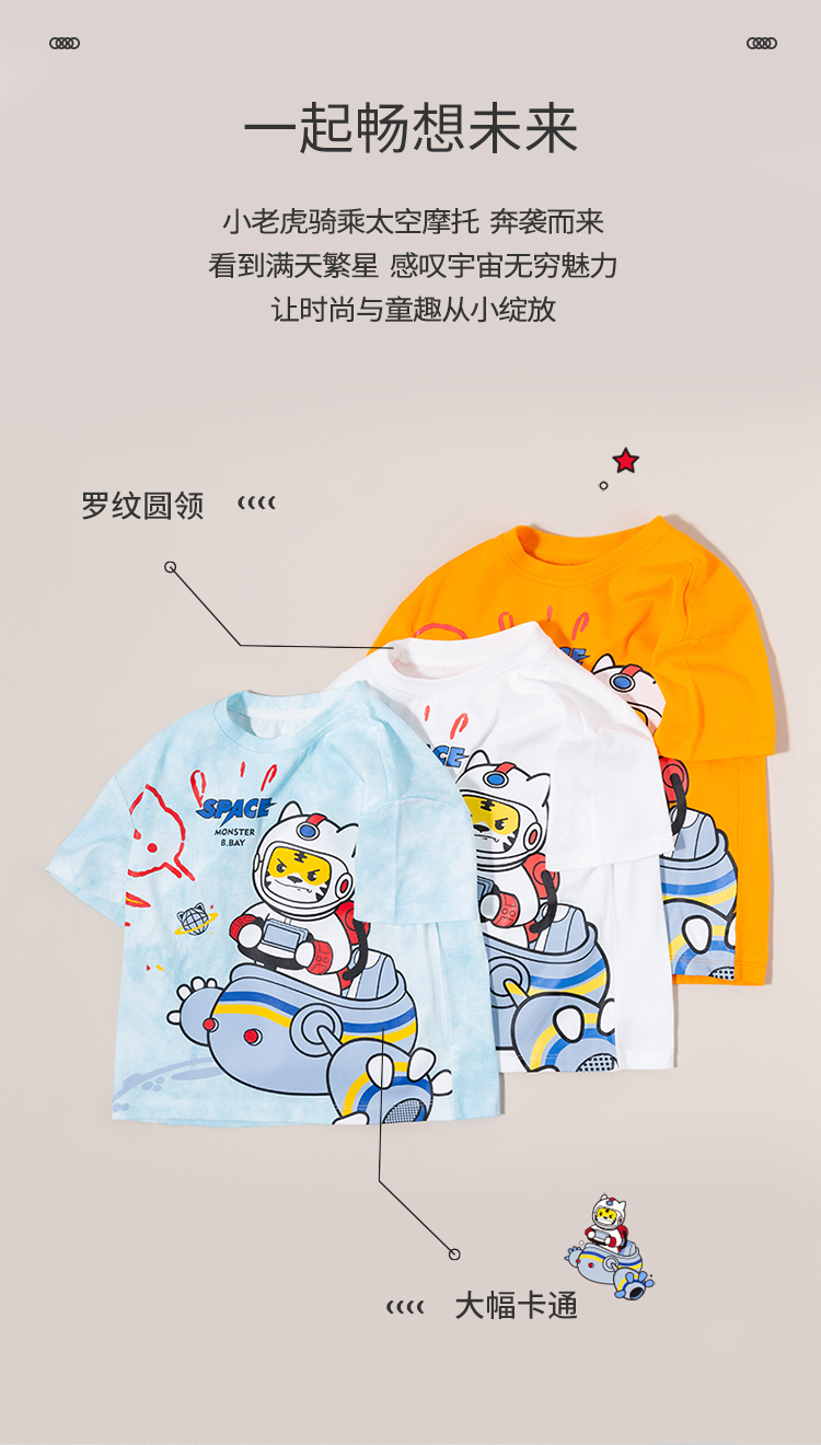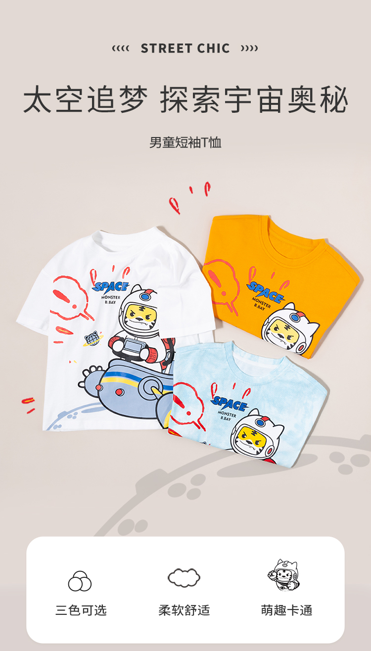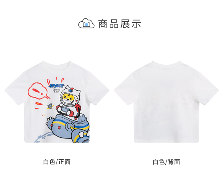 贝贝怡儿童T恤短袖男童装夏季2022新品卡通印花柔软透气外出衣服