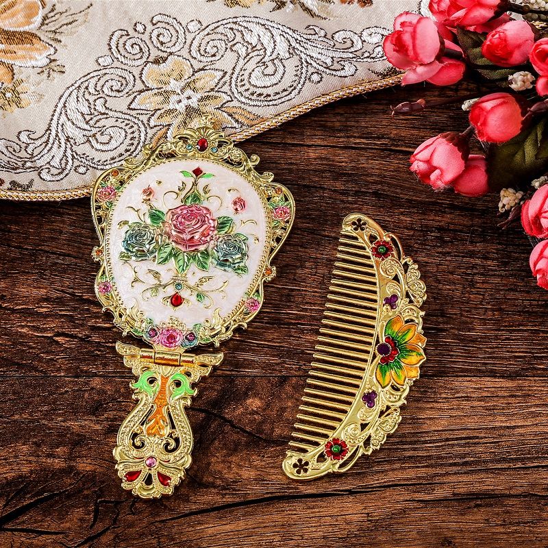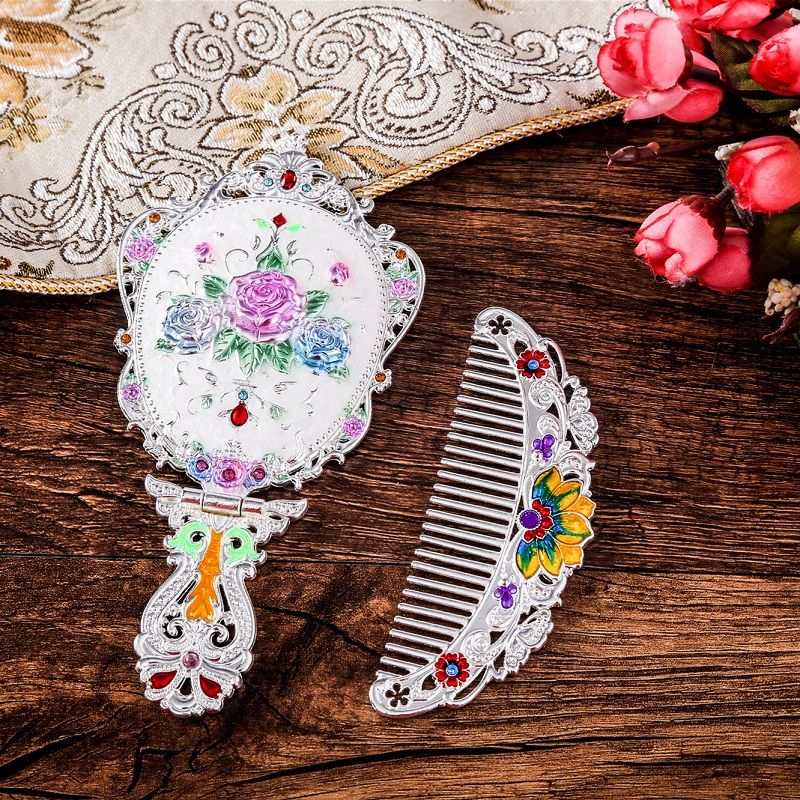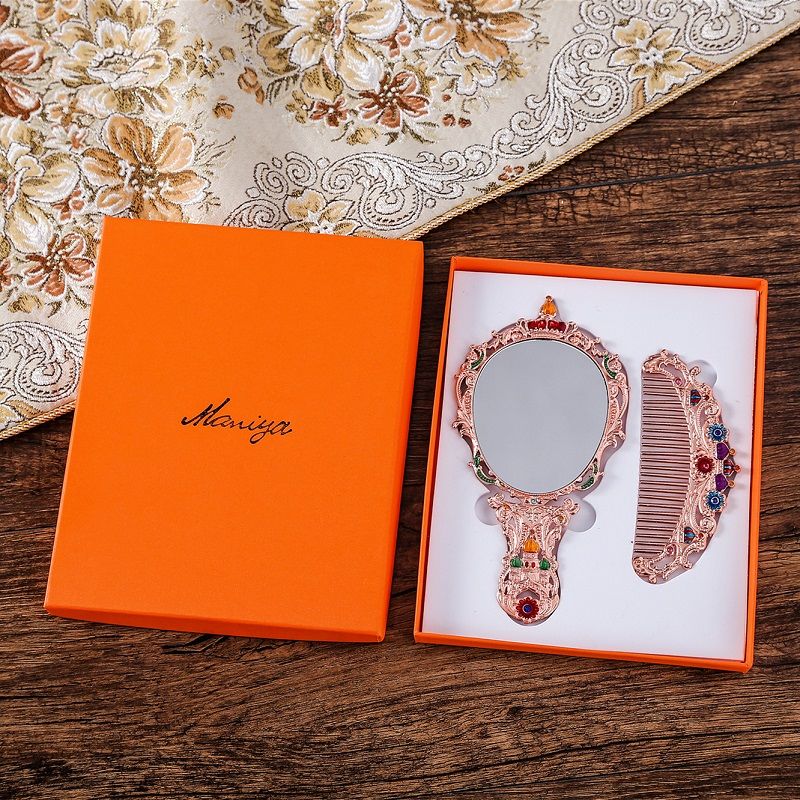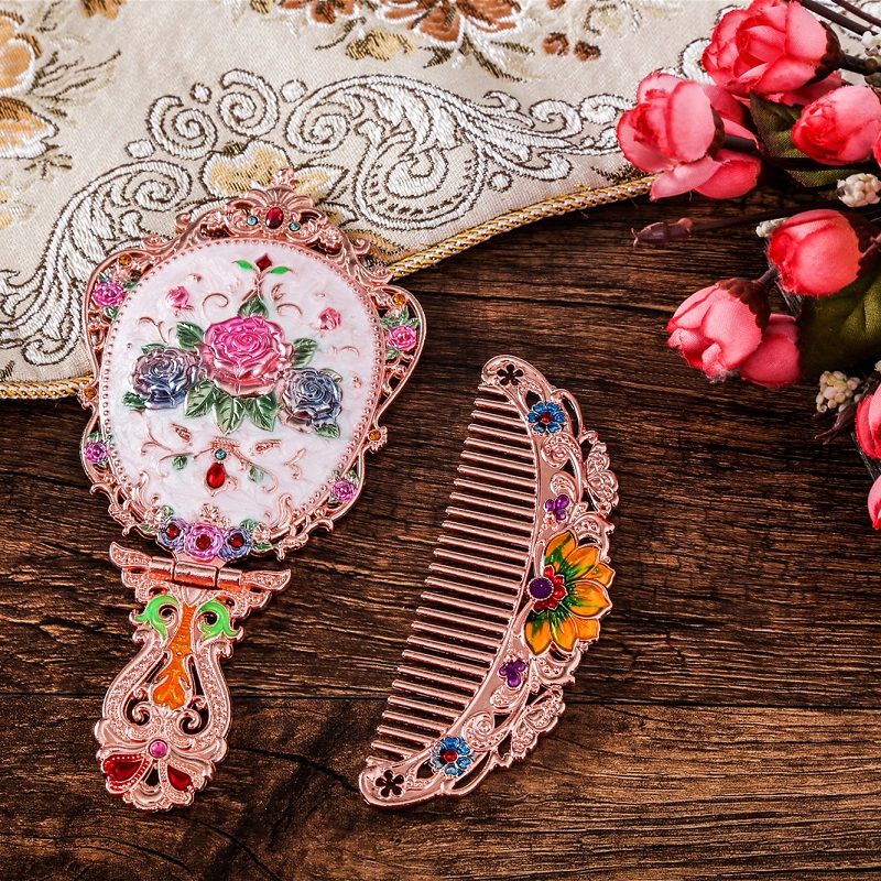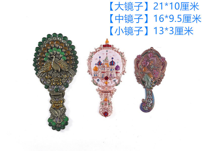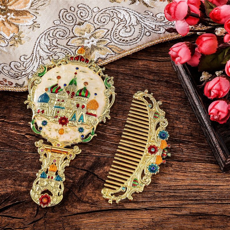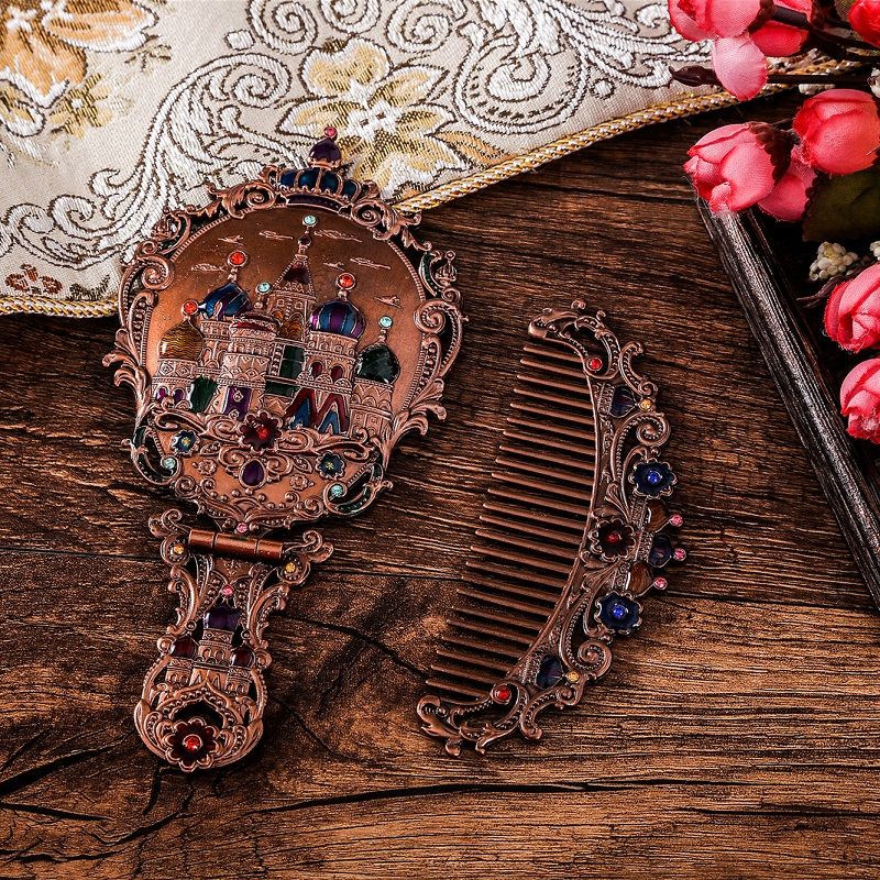 俄罗斯套装欧式折叠化妆镜美女台镜套装复古城堡镜子公主镜手柄镜
