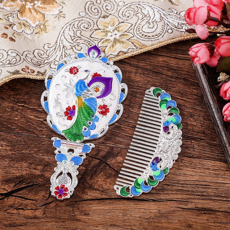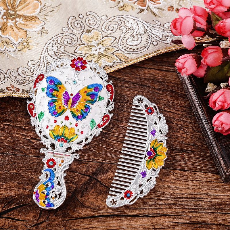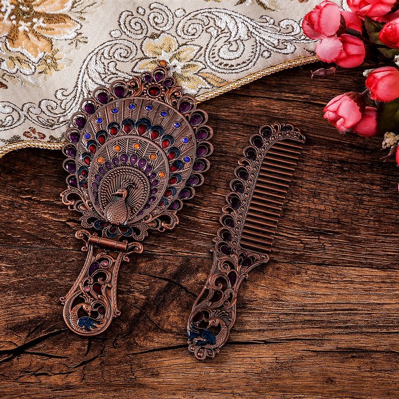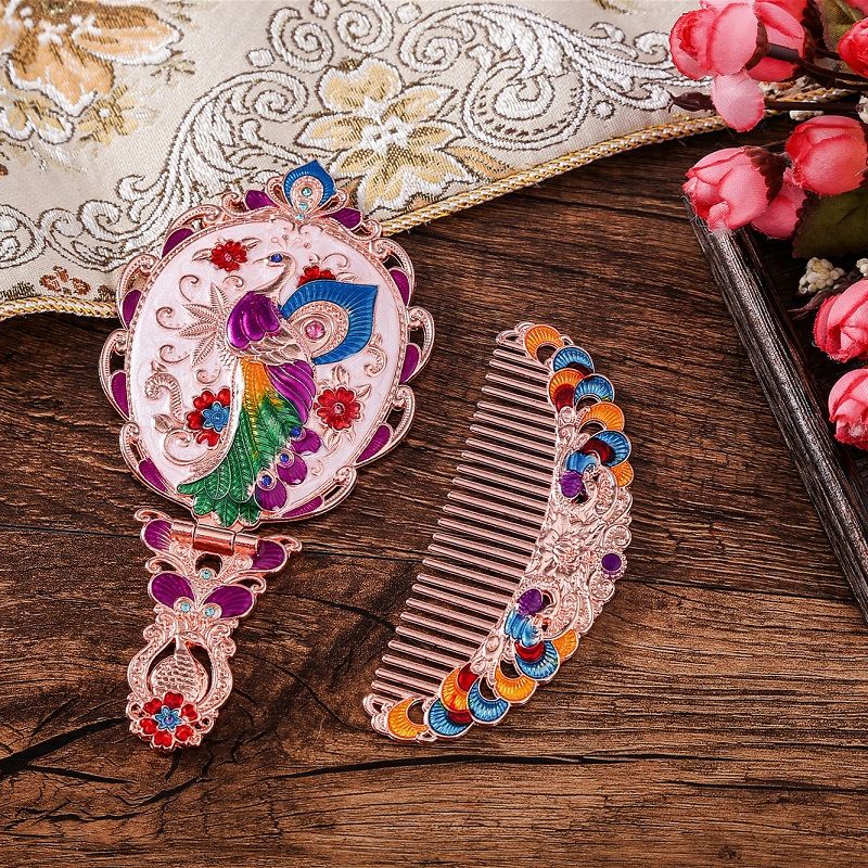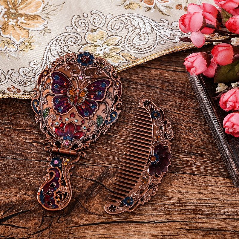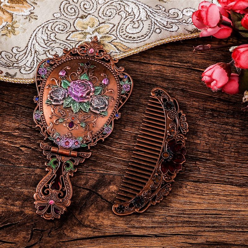 俄罗斯套装欧式折叠化妆镜美女台镜套装复古城堡镜子公主镜手柄镜