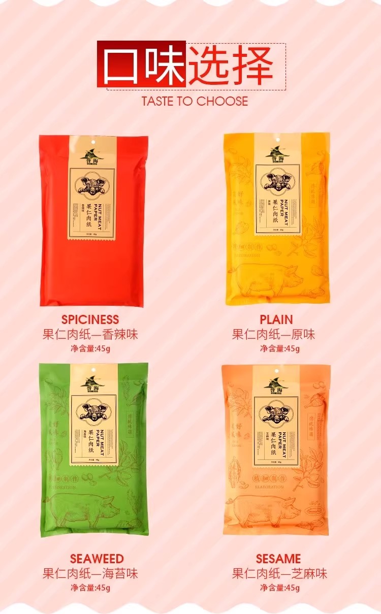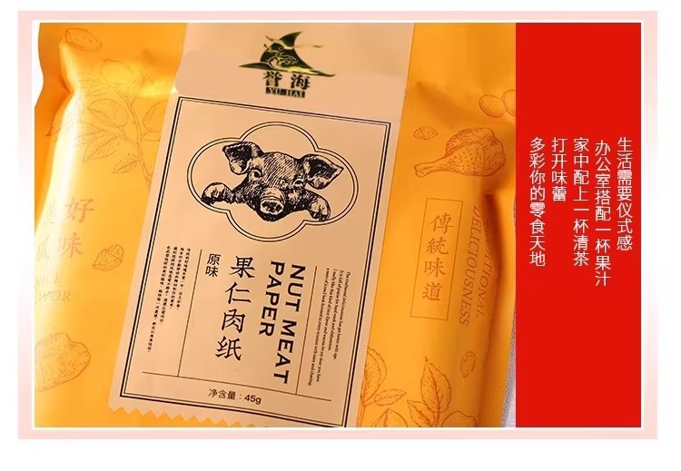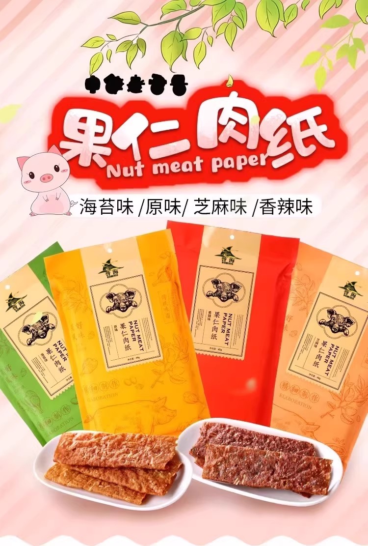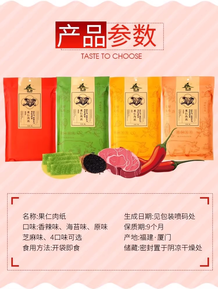 果仁肉纸45g原味海苔芝麻香辣杏仁薄脆纸猪肉片肉干厦门特产