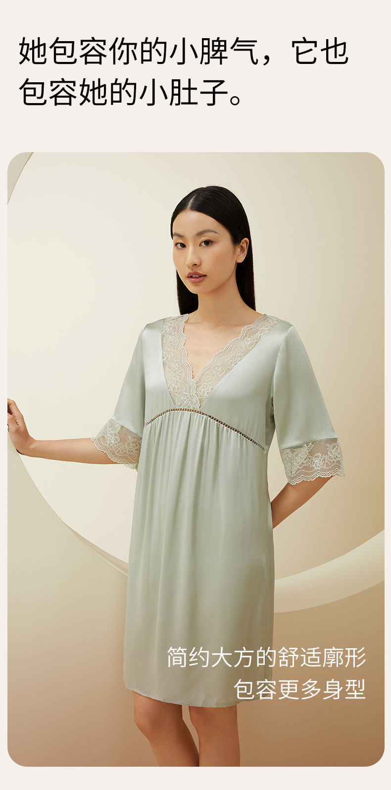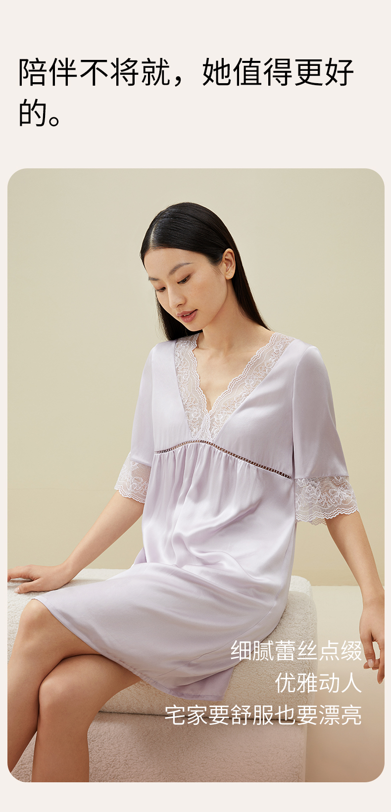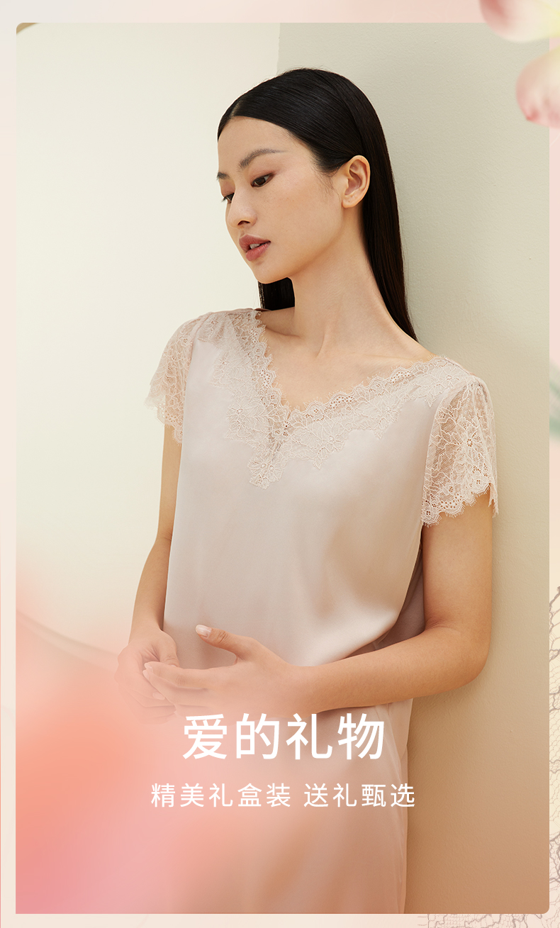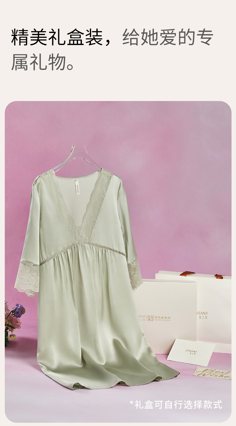 “TA”重磅真丝睡裙女100%桑蚕丝蕾丝睡衣家居服礼盒金三塔 (限价款)YSF9B310+YSFBA323