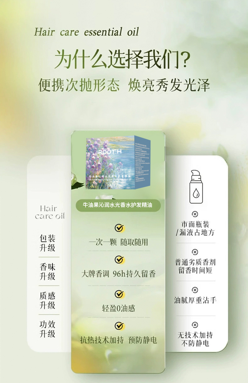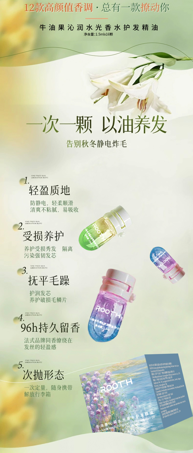 热卖!2盒立减20元!次抛护发精油!【1盒到手12种香型 】ROOTH 牛油果沁润水光次抛护发精油 好闻清爽不油腻 1.5ml*16颗/盒