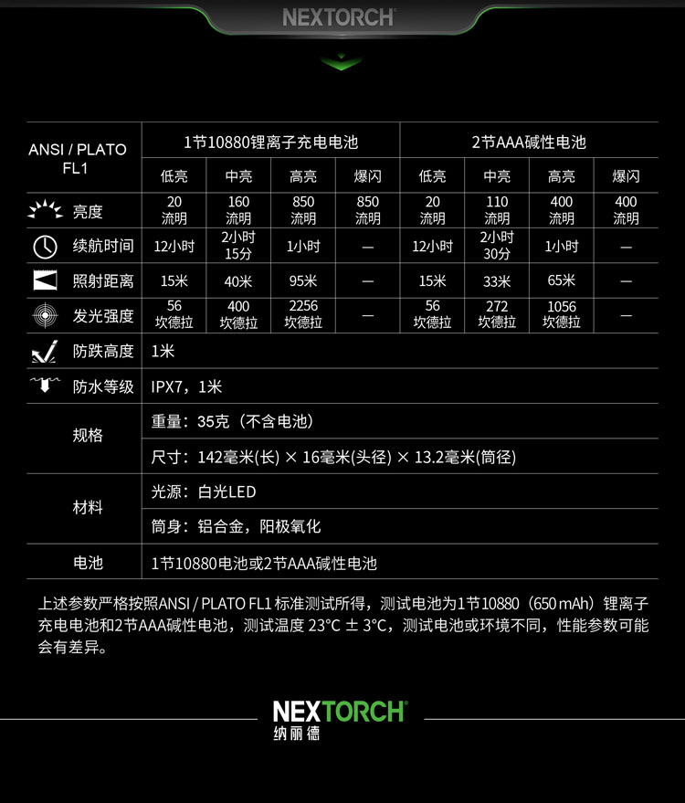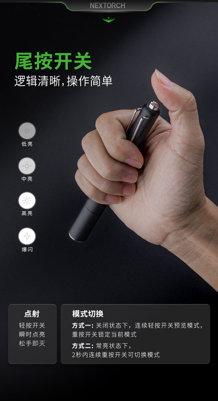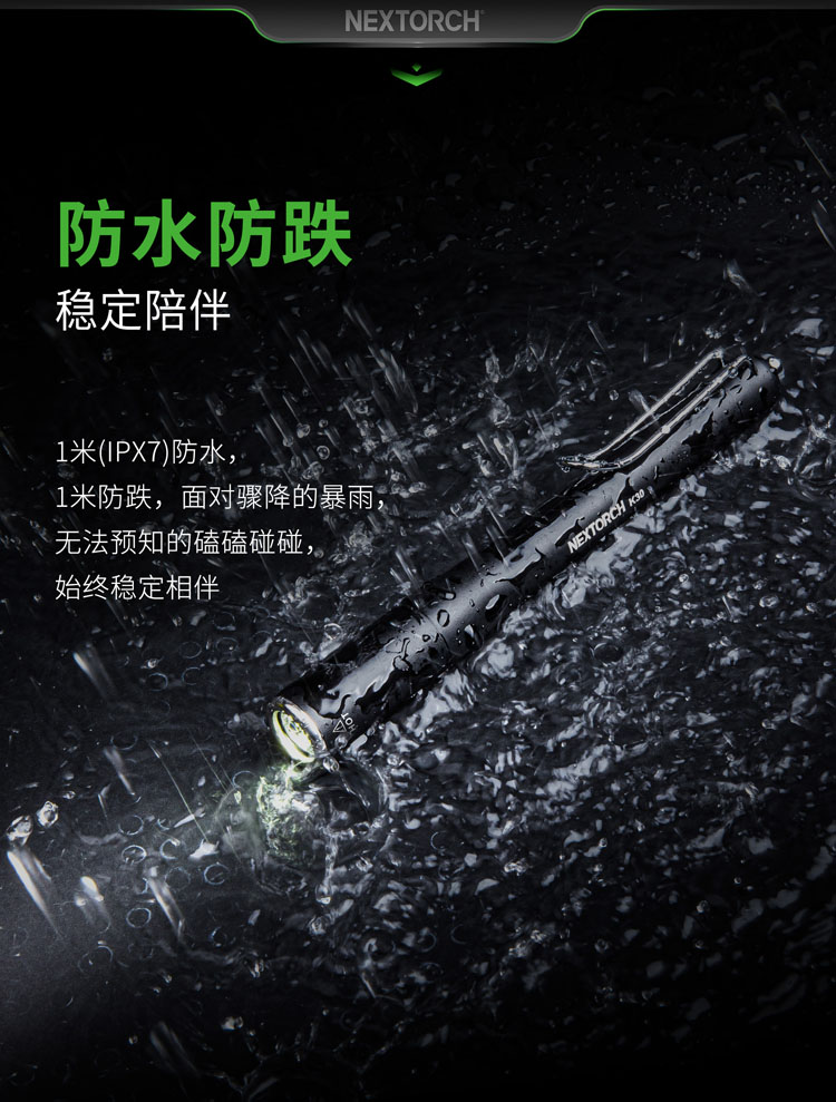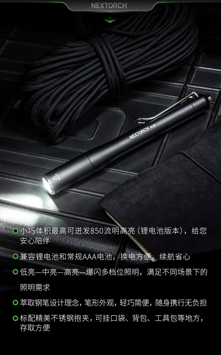 纳丽德 K30笔形手电办公便携900流明可充电双动力版本