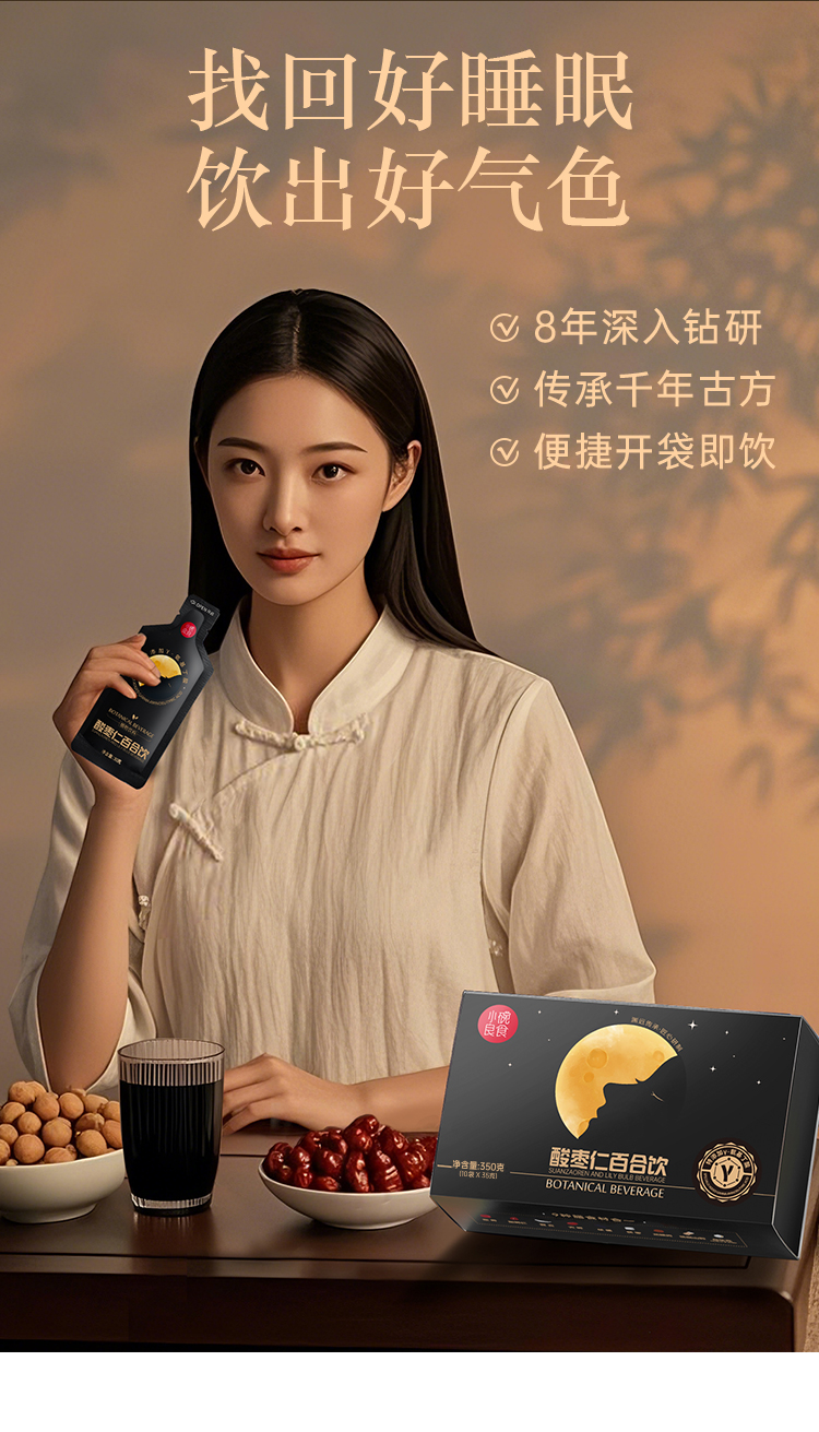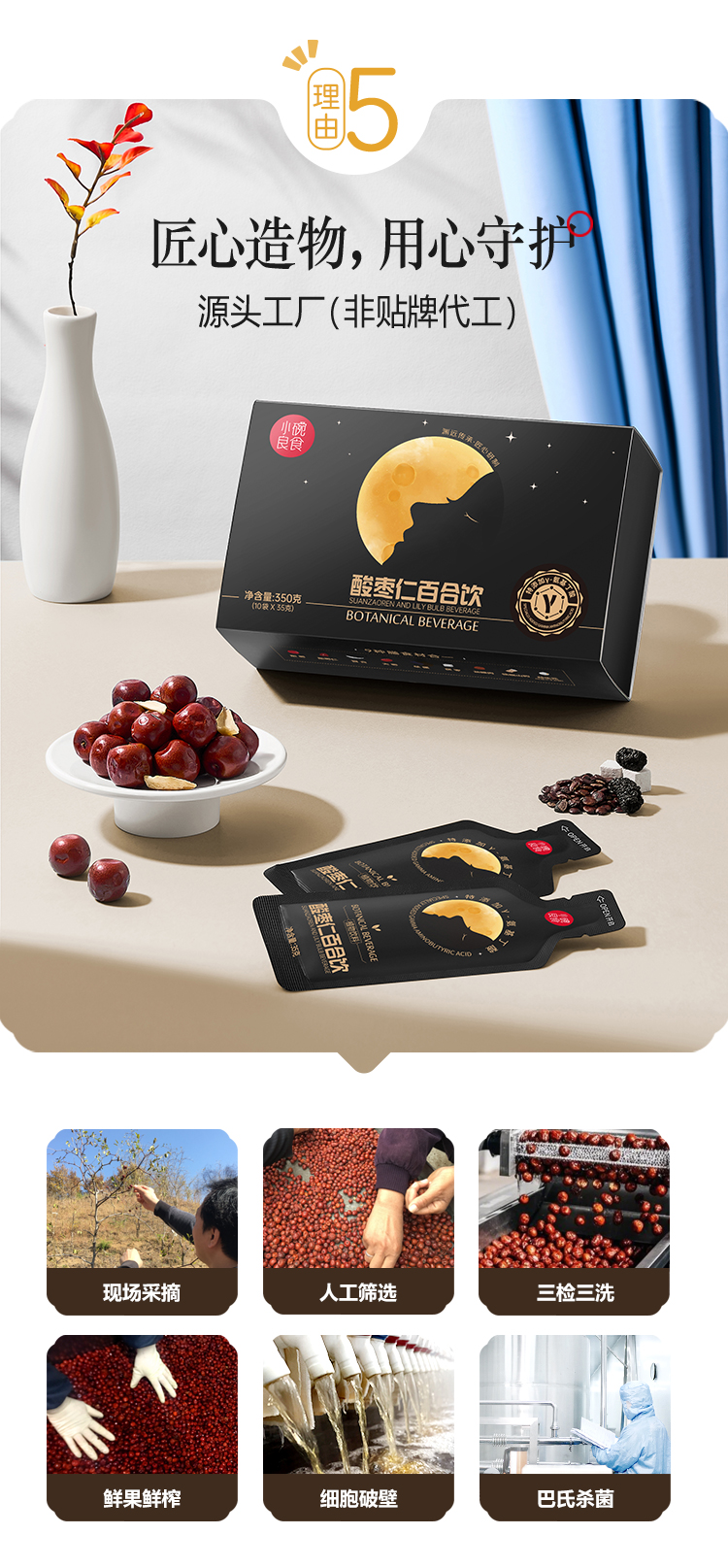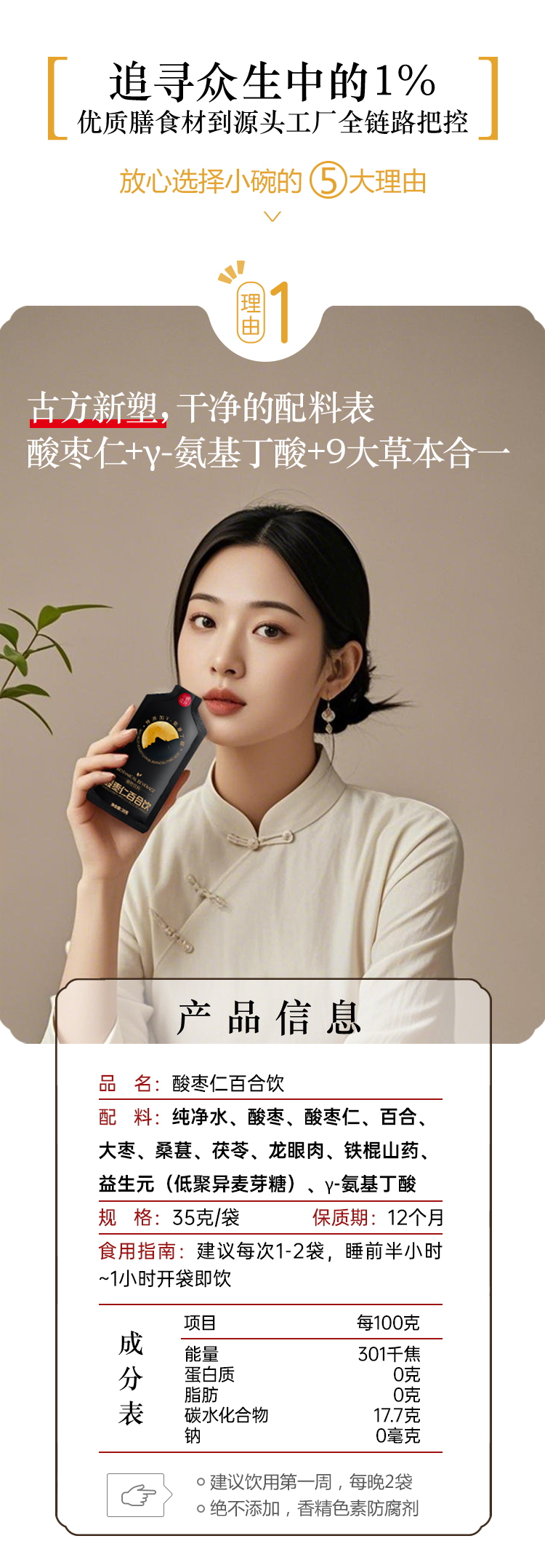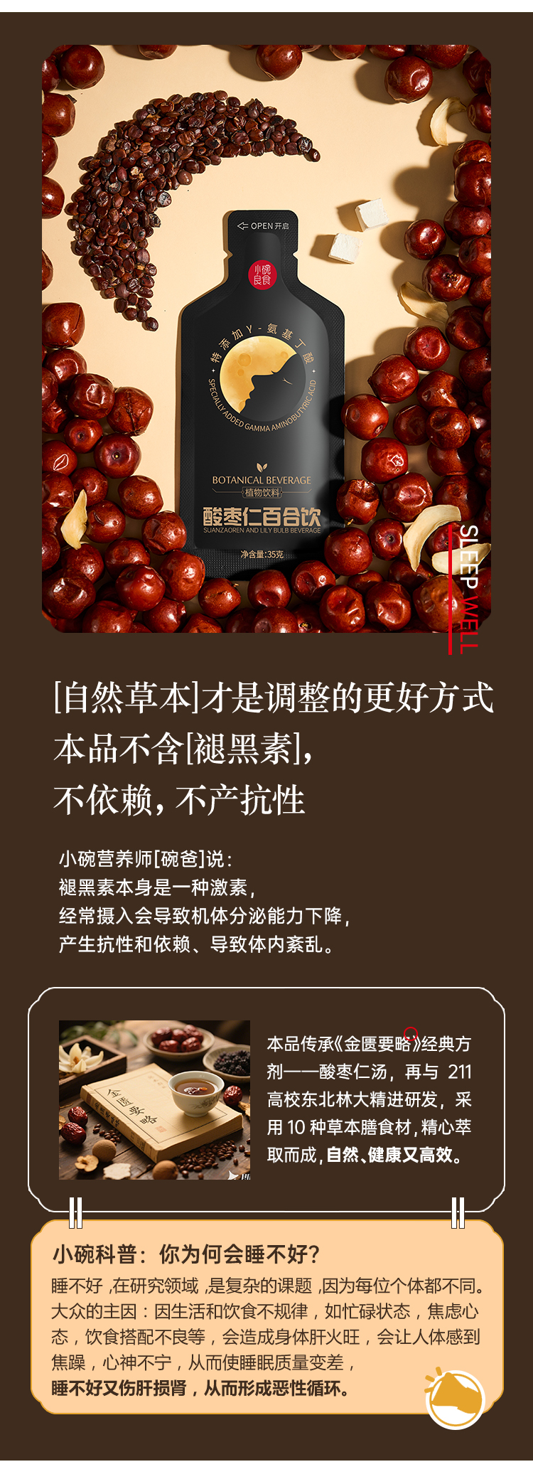 【小碗良食官方活动】酸枣仁百合饮 野生酸枣仁+γ-氨基丁酸 无添加草本安睡植物饮 开袋即饮35g*10袋