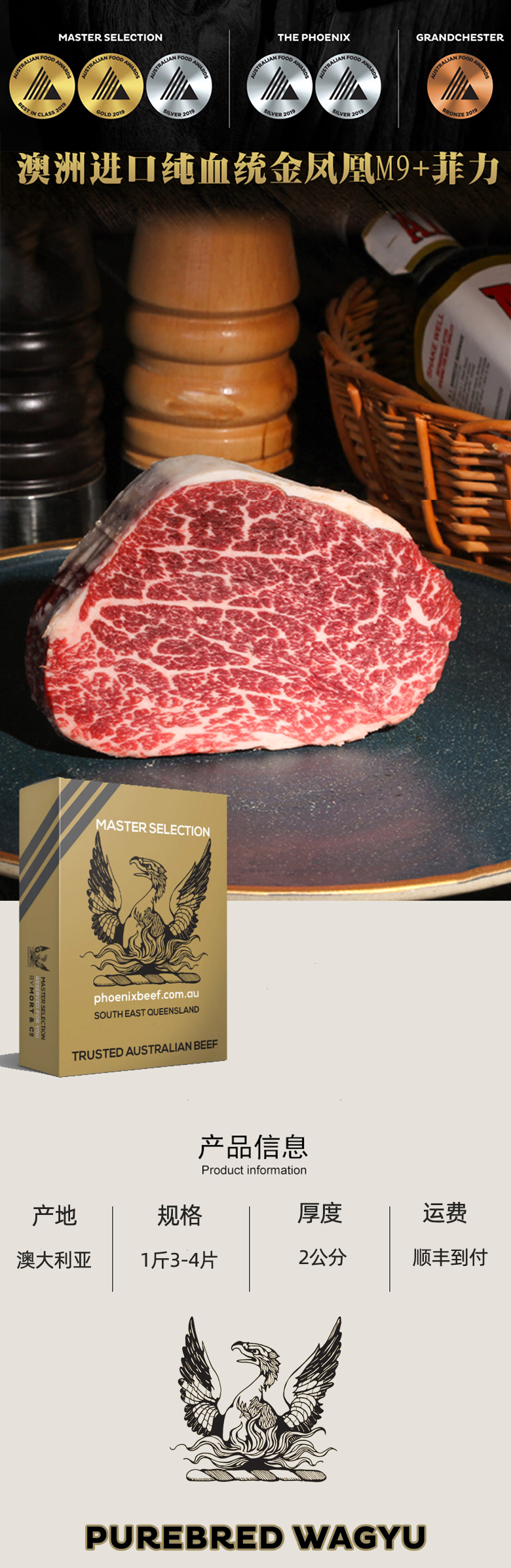 澳洲和牛金凤凰M9+菲力顺丰快递运费到付