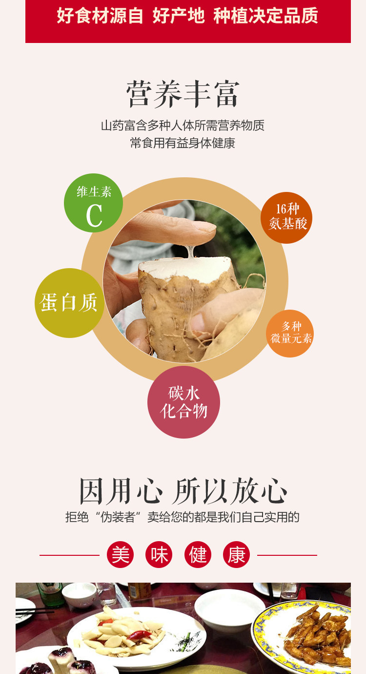 - 十年专注药食同源,坚持生态有机方式种植,坚持原产地、原生态,拒绝除草剂 、拒绝硫熏工艺、拒绝转基因、拒绝膨大激素