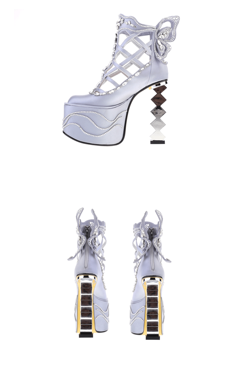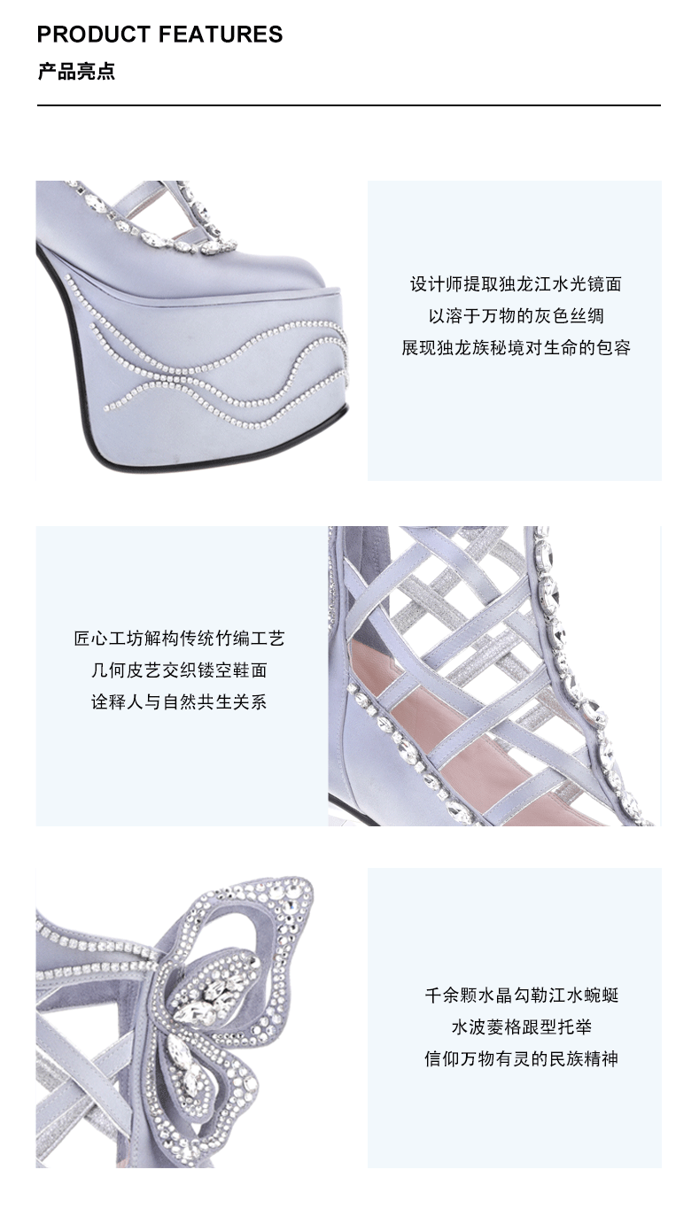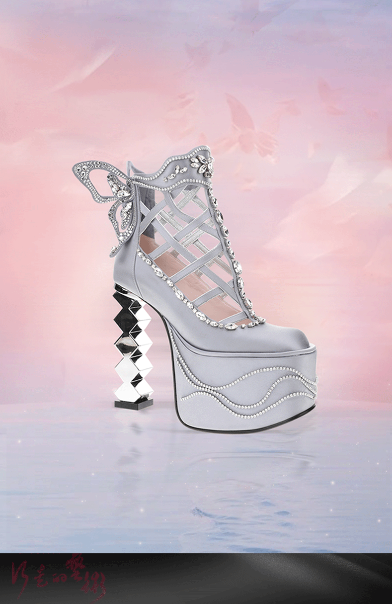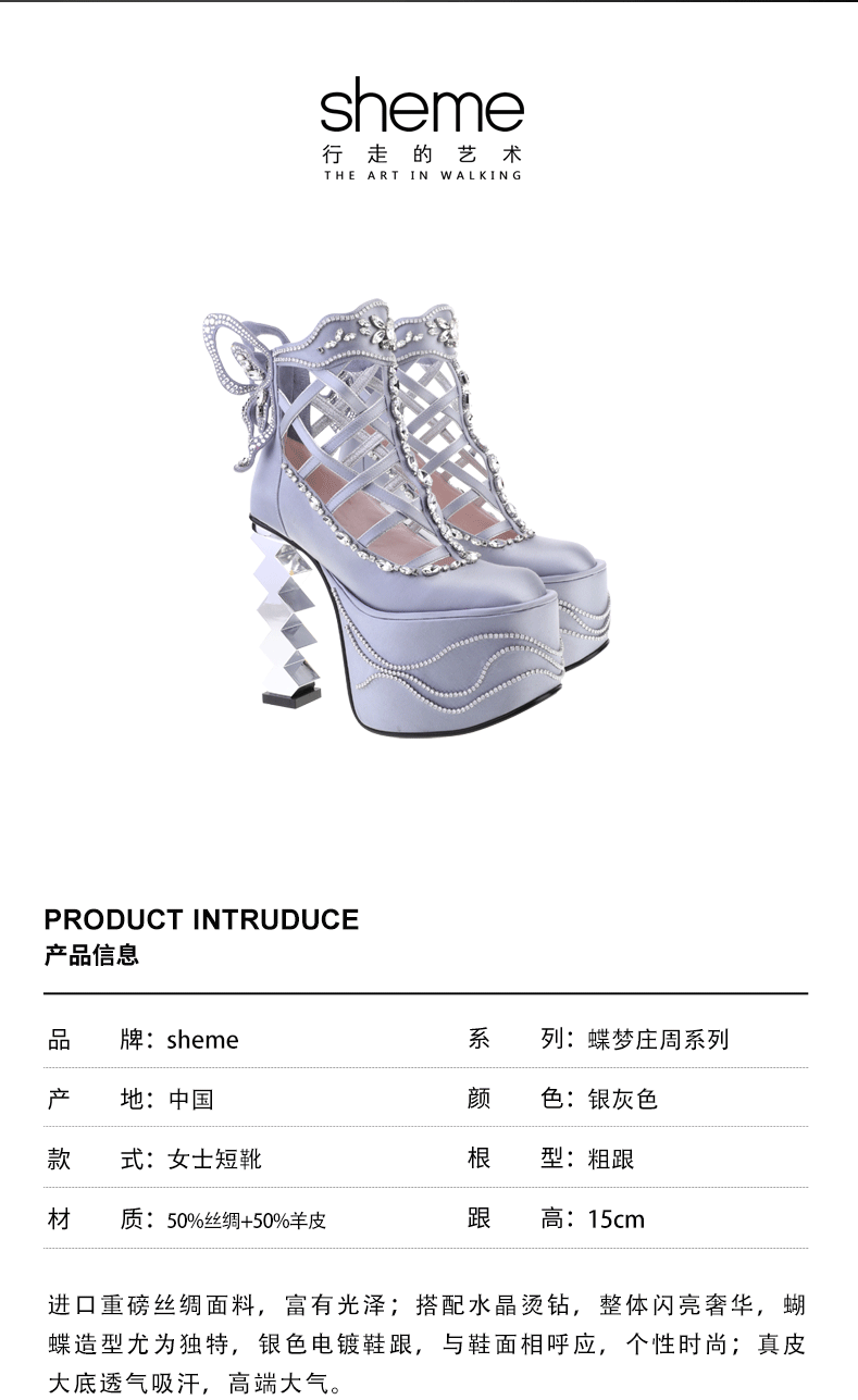 sheme蝶梦庄周系列进口丝绸搭配异性跟水晶点缀全球限量版新中式女士短靴可定制