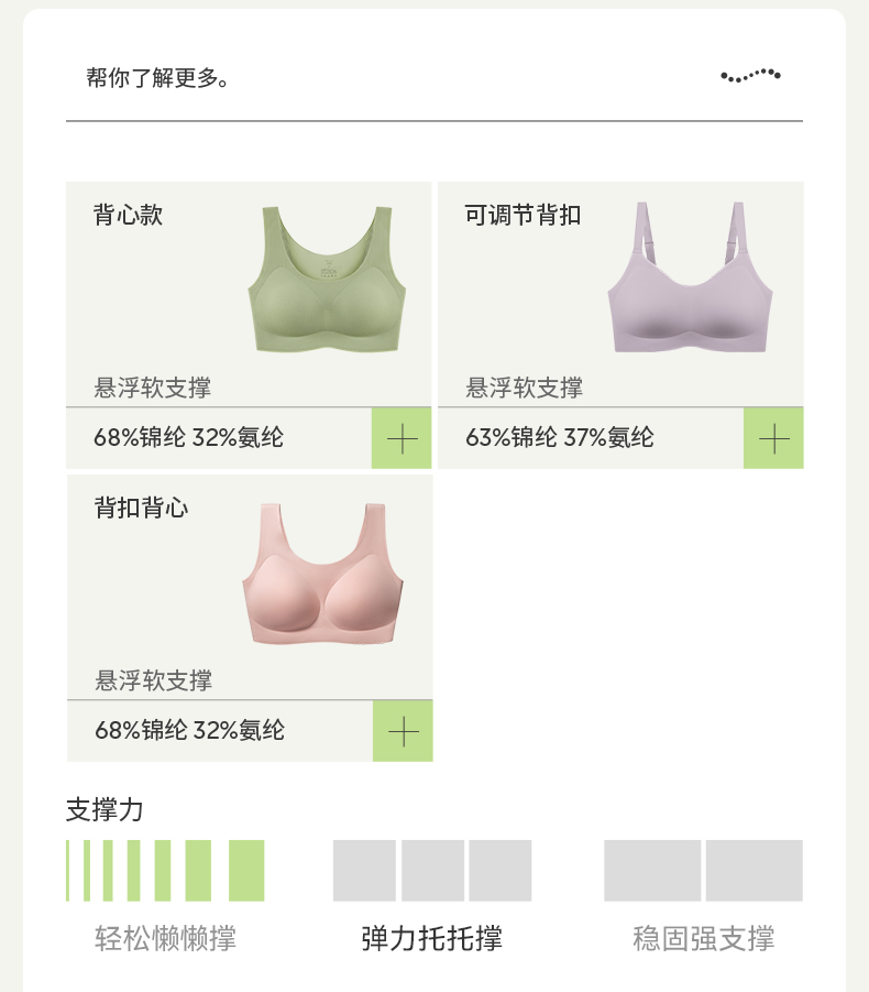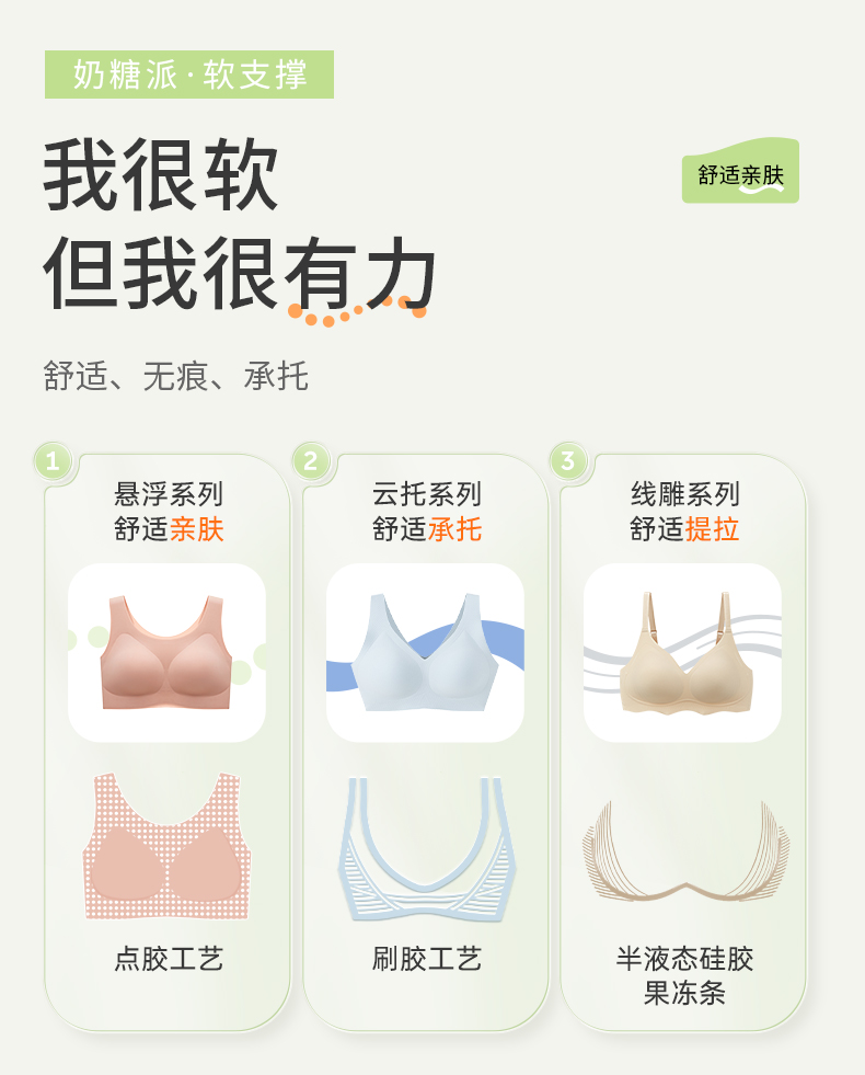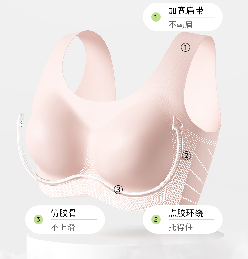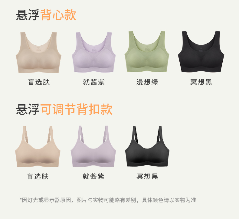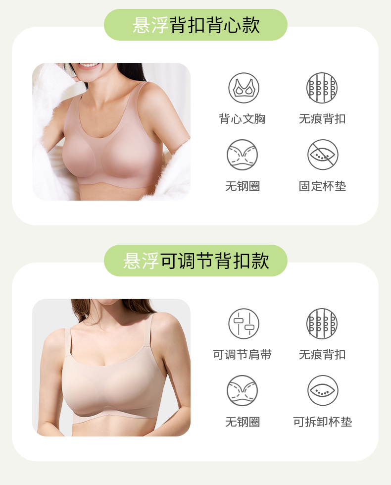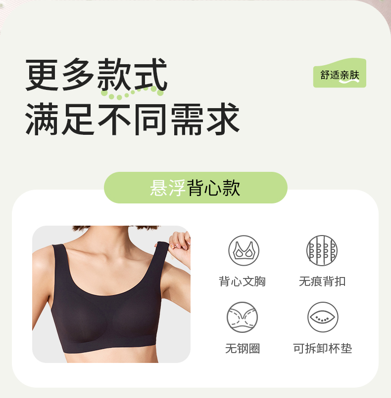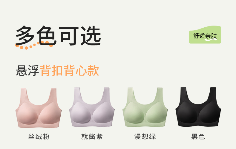 奶糖派无痕软支撑背心背扣式悬浮系列大胸显小稳定承托居家内衣女