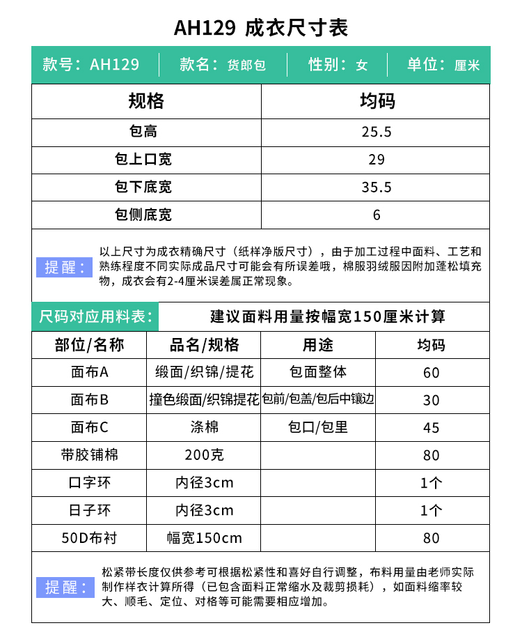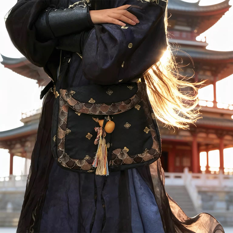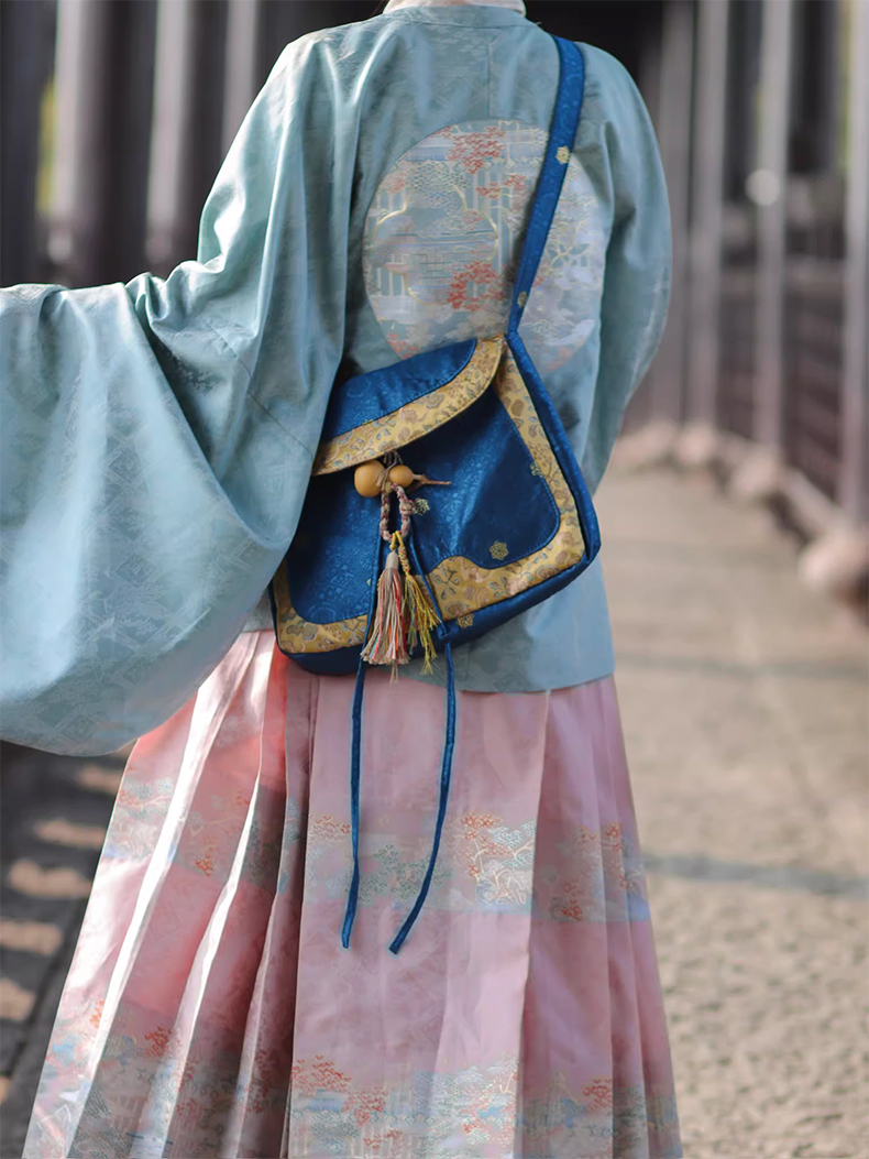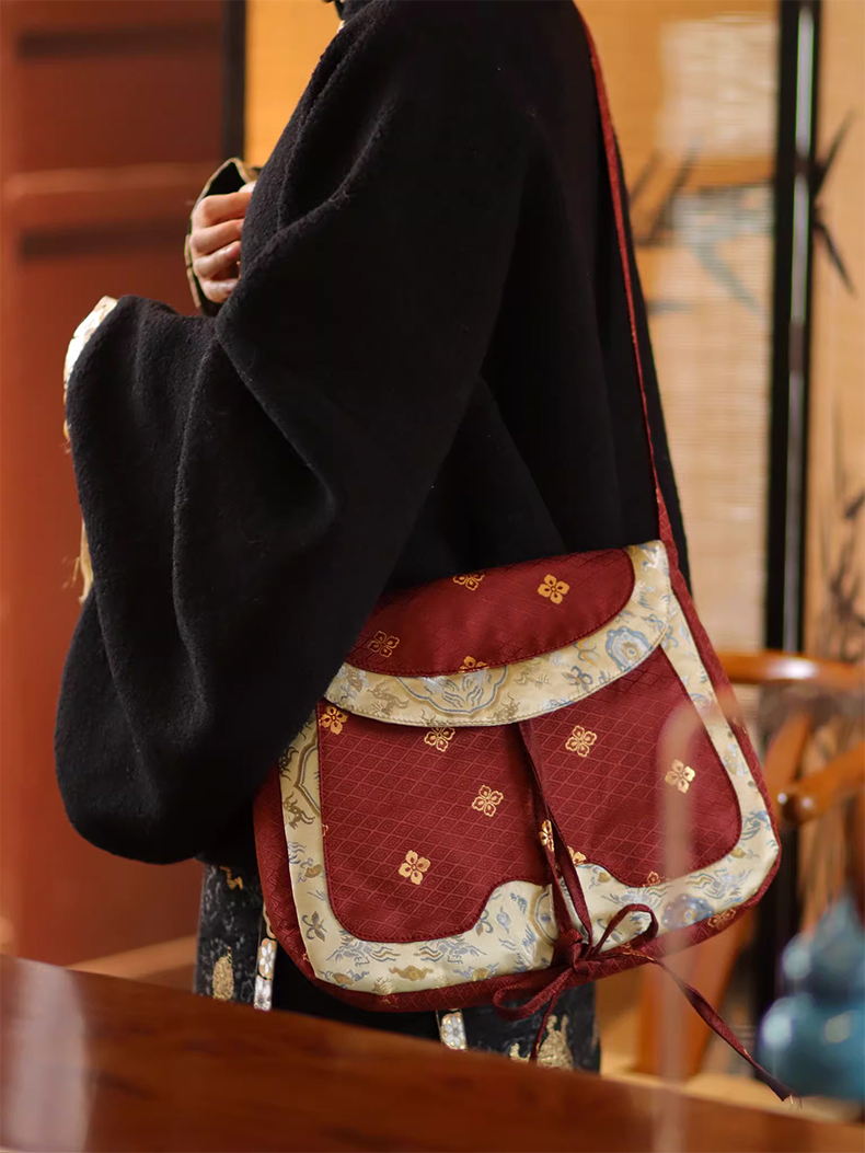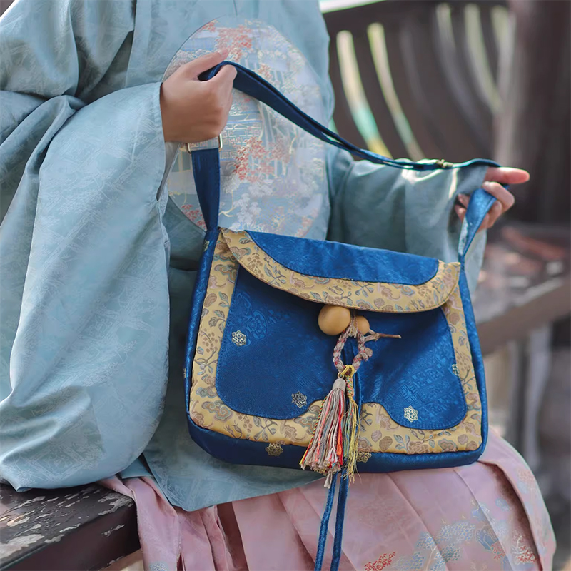 裁缝学苑AH129汉服货郎包纸样女装大容量拼色斜挎布包样板图纸打板