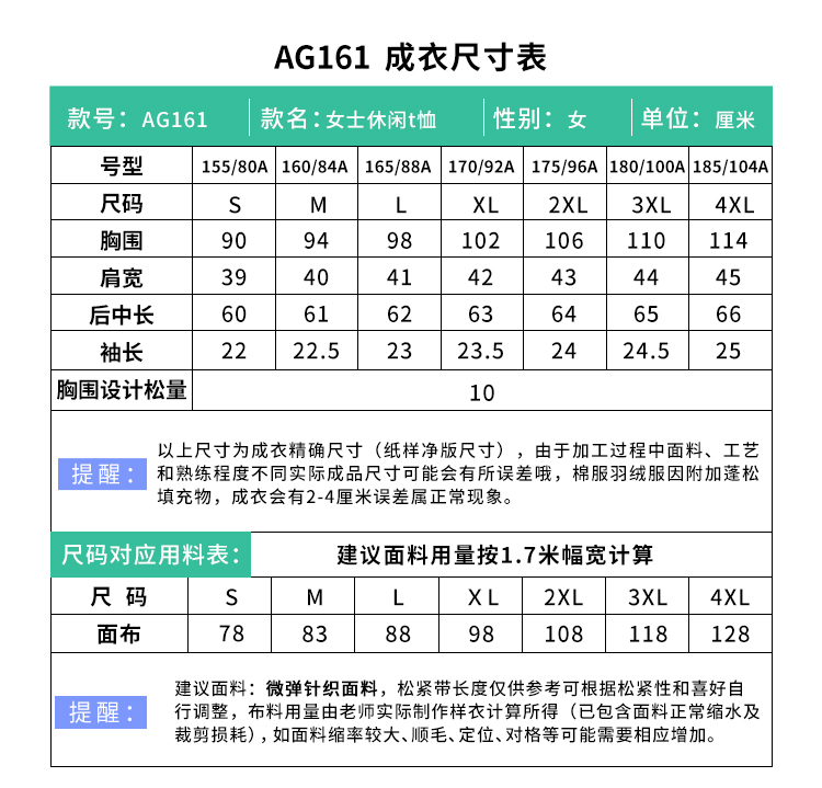 裁缝学苑AG161 t恤纸样女装服装夏天做衣服上衣打版裁剪样板图纸
