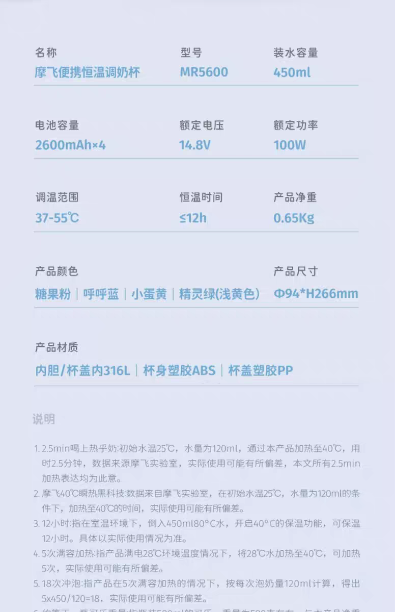 【春上新】10楼 摩飞 便携恒温调奶杯 MR5600 吊牌价349元 活动价299元