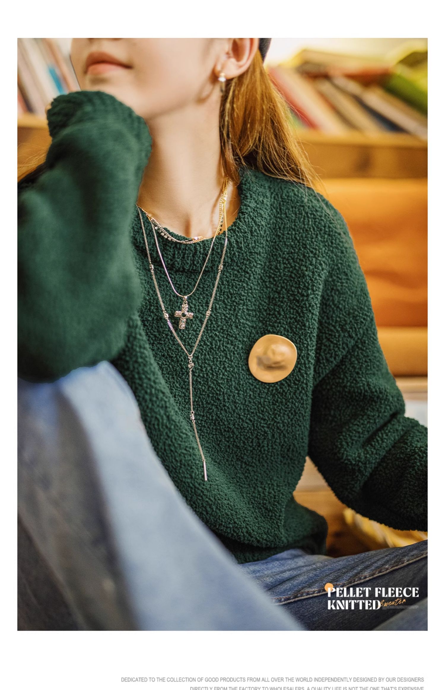 马登美式颗粒绒圈圈毛衣复古套头软糯风针织衫内搭打底上衣秋季女