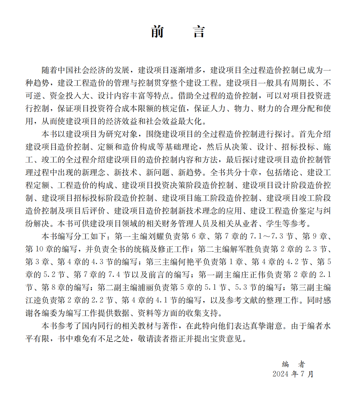 建设项目全过程造价控制 刘耀,解军胜,何艳平 主编 中国建设科技出版社, 2024ISBN 9787516043516