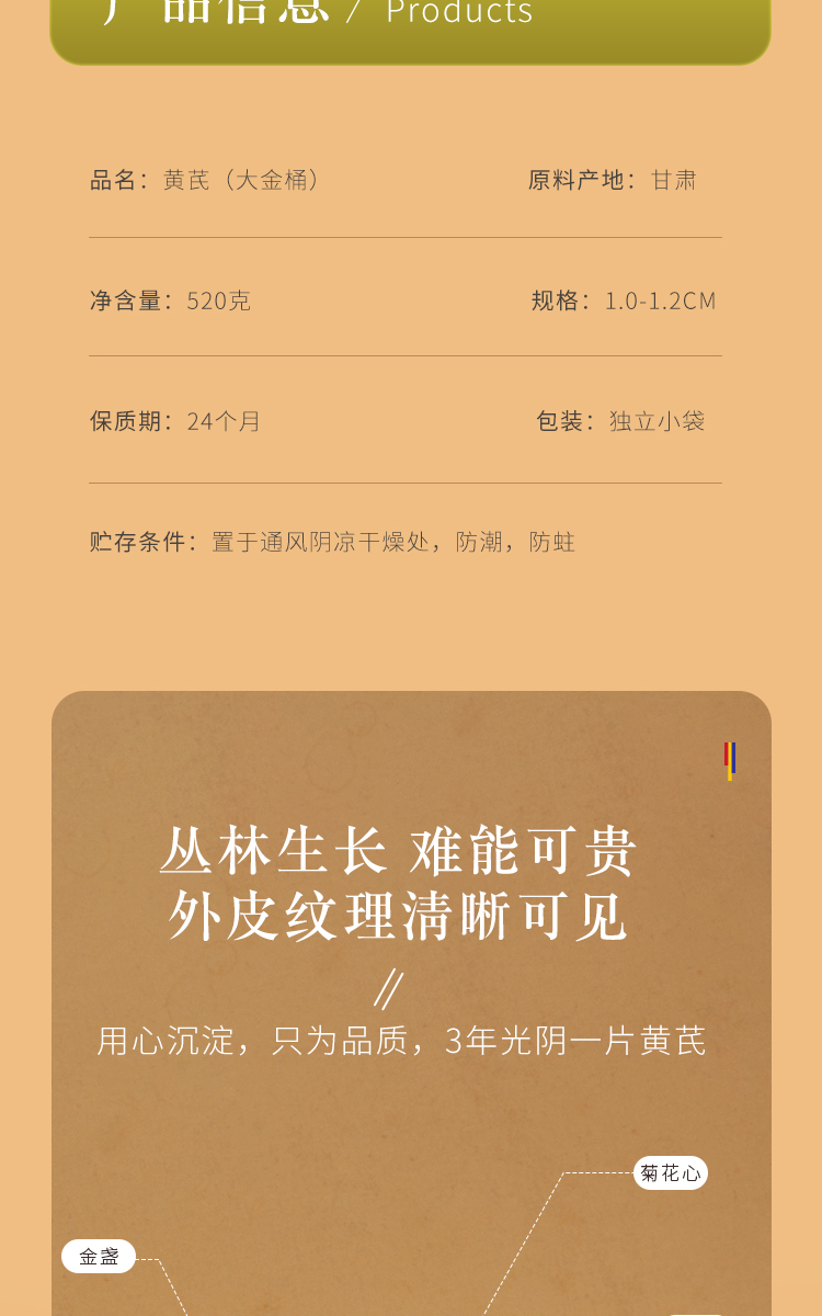 福东海 黄芪520g(10g*52袋) 严选甘肃黄芪大片北芪煲汤食材滋补品好礼