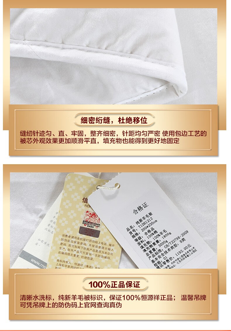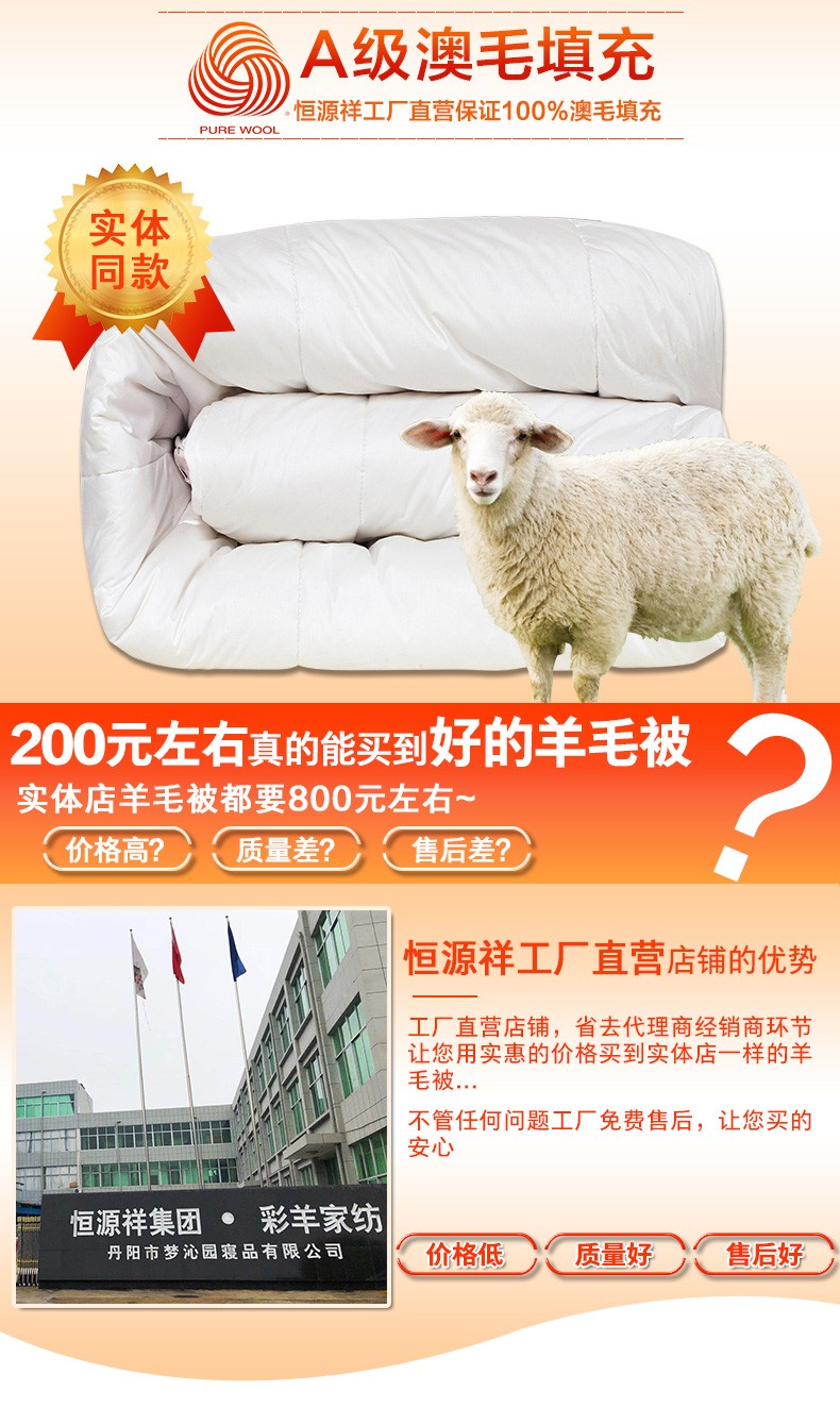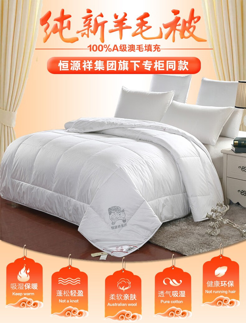 恒源祥集团彩羊家纺-纯新羊毛被-白1DH1212