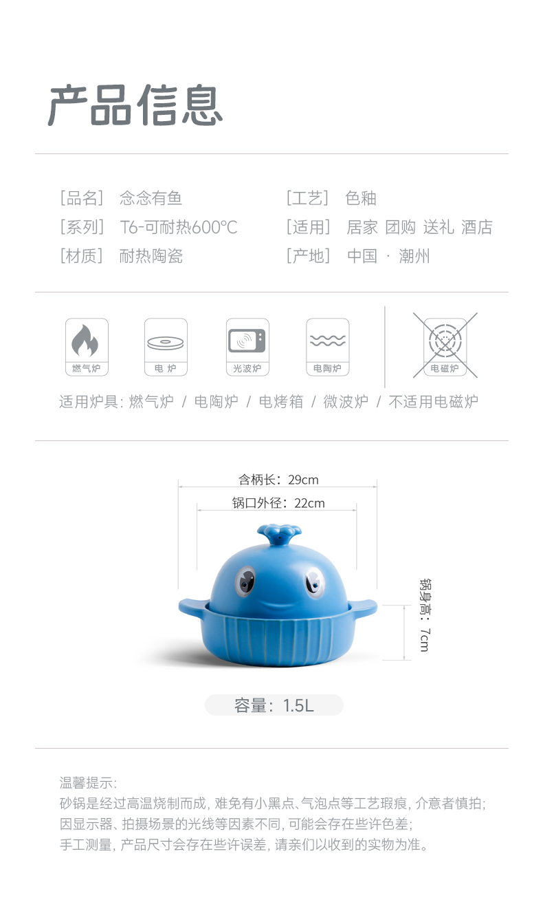 【念念有鱼】陶煲王家用防溢煲仔砂锅耐热陶瓷炖锅可爱锅仔塔吉锅沙锅陶瓷煲