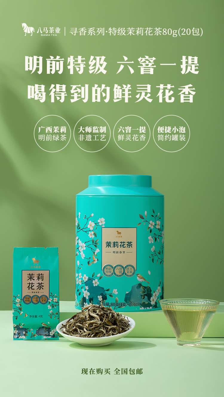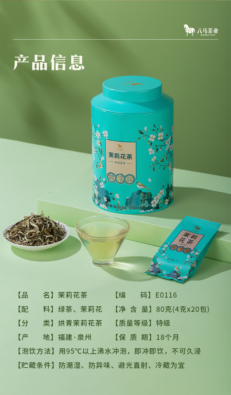 【99元任选2罐】八马茶业丨特级茉莉花茶百福1号罐茉莉花茶60g