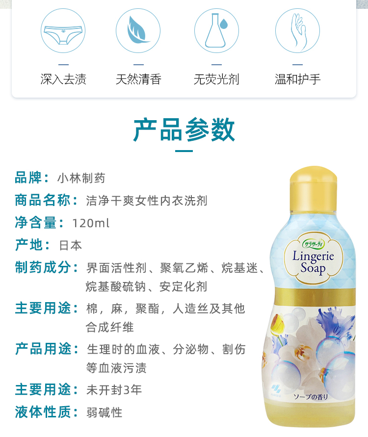 【一般贸易进口】日本原装进口小林女性内衣专用洗衣液生理期内裤清洗剂洗涤剂120ml