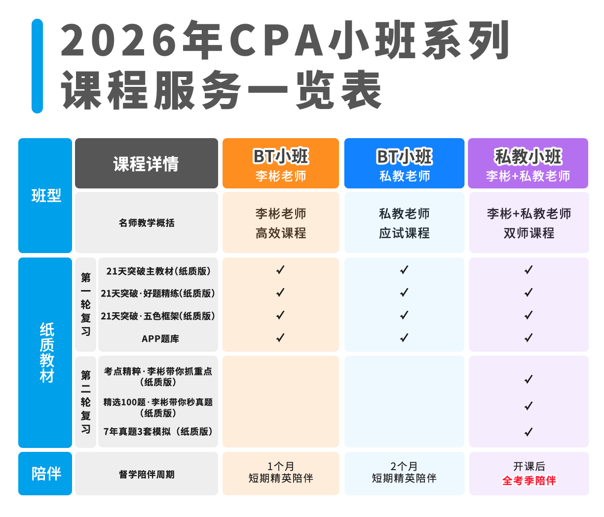 【CPA出分季】2026年CPA BT小班(李彬老师)BT教育