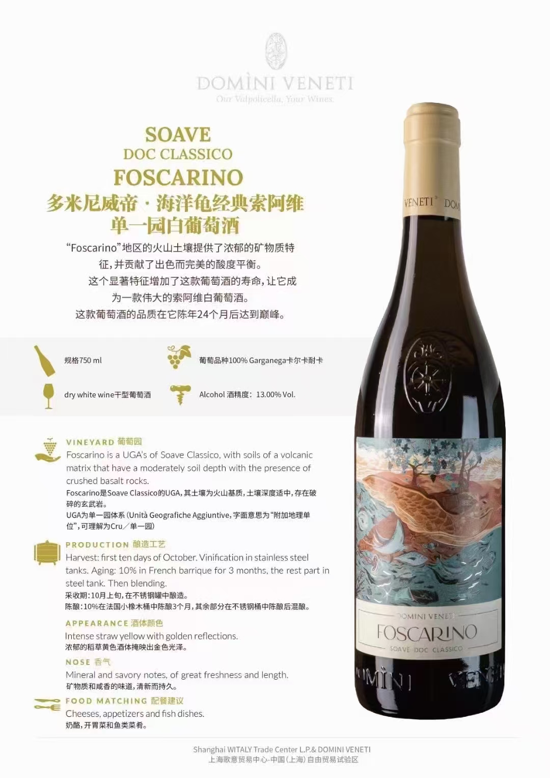 多米尼威帝海洋龟经典索阿维单一园白葡萄酒