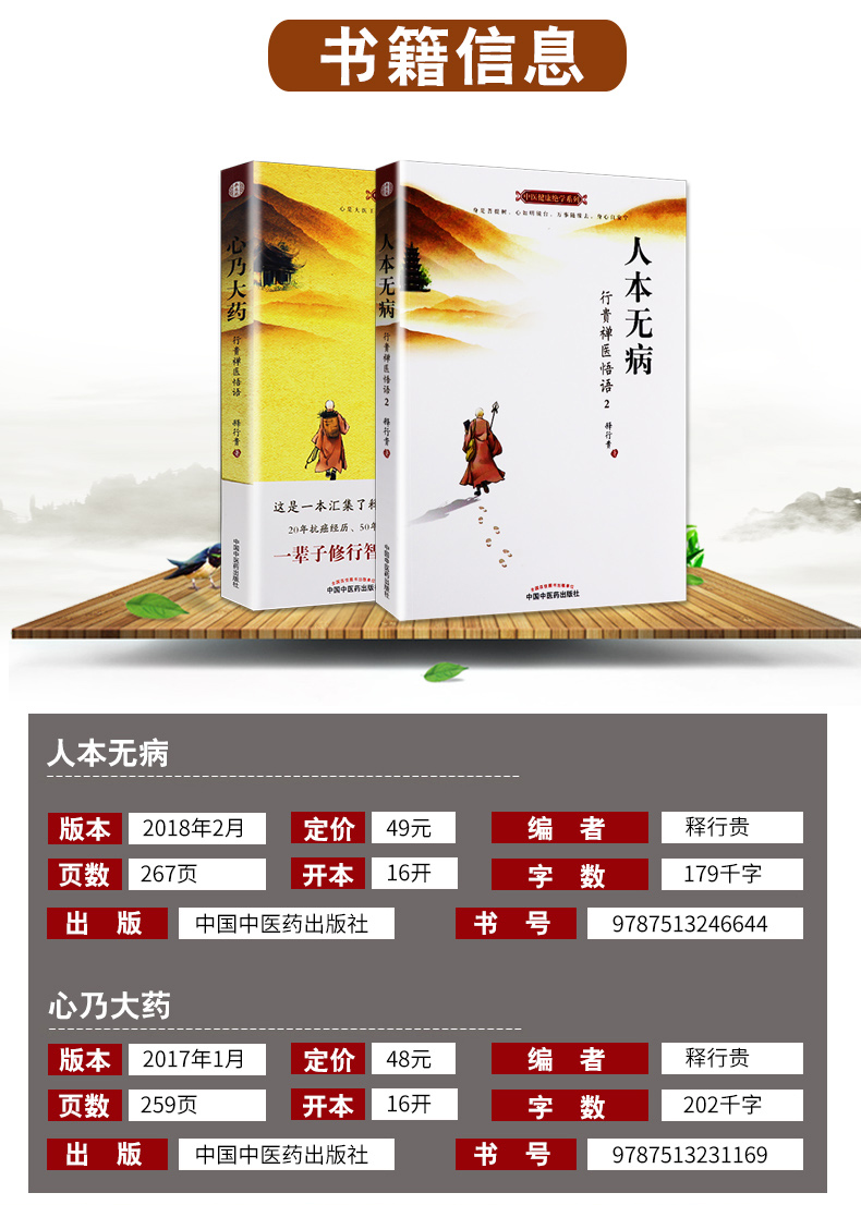【出版社直销】套装 人本无病+ 心乃大药 中医健康绝学系列书 人本无病 行贵禅医悟语2 永远不要把自己当病人 中国中医药出版社