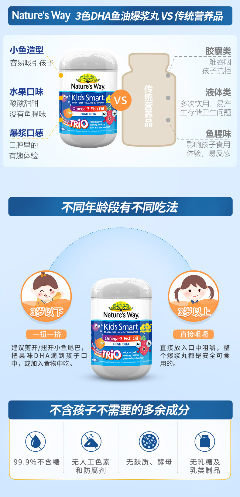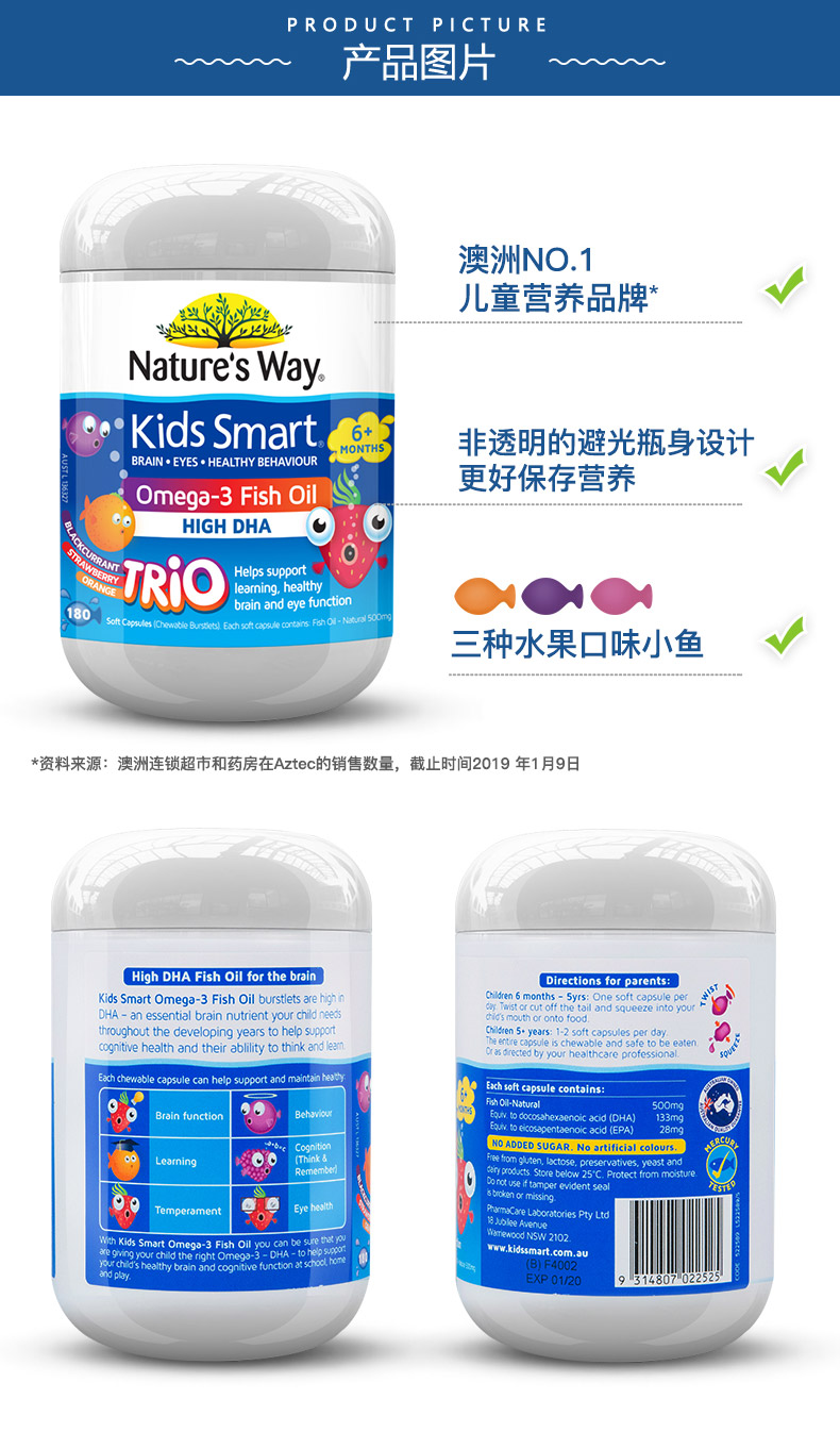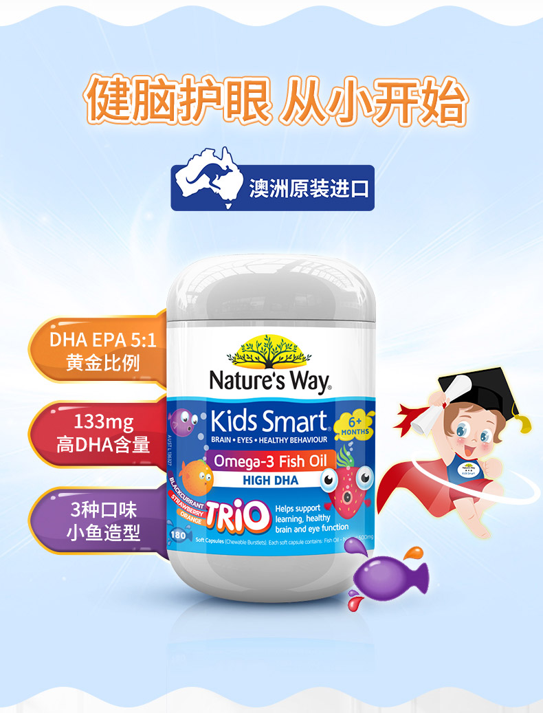 澳洲Nature's Way佳思敏儿童DHA三色爆浆 护眼鱼油 180粒