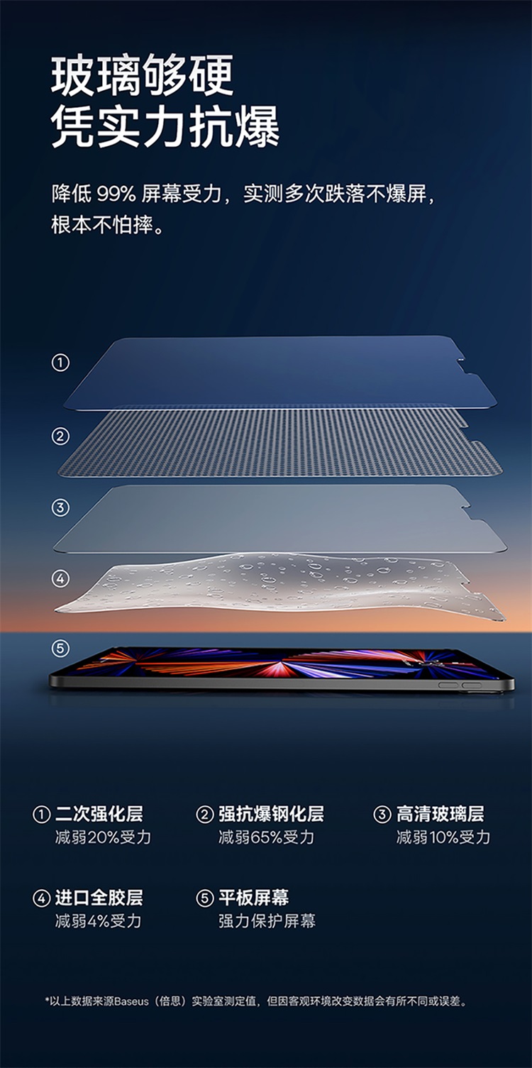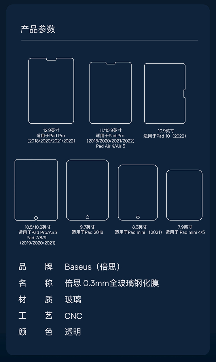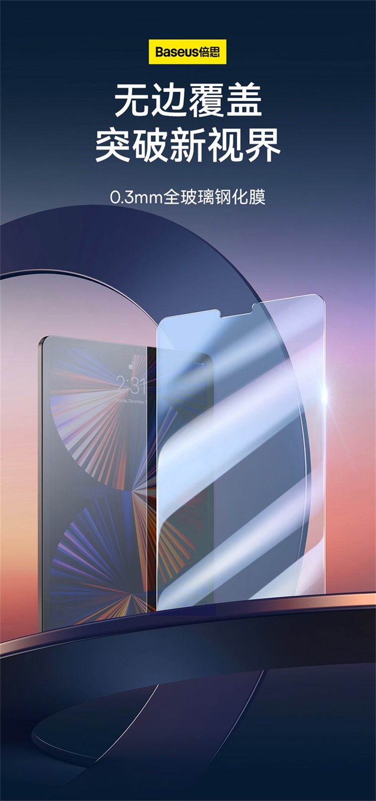 倍思 0.3mm全玻璃钢化膜 For Pad系列(含:贴膜神器*1+清洁包*1)透明