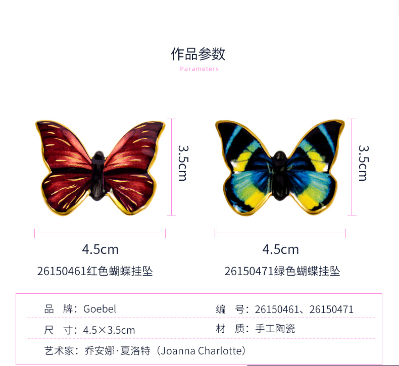 【6F】Goebel进口陶瓷手工挂坠艺术首饰蝴蝶项链情人节礼品生日礼品情侣