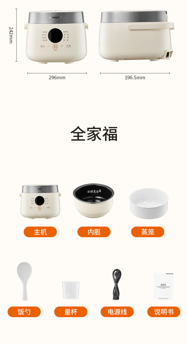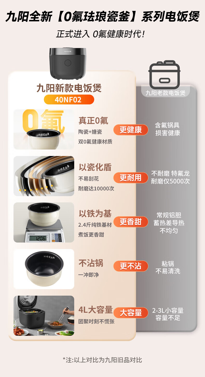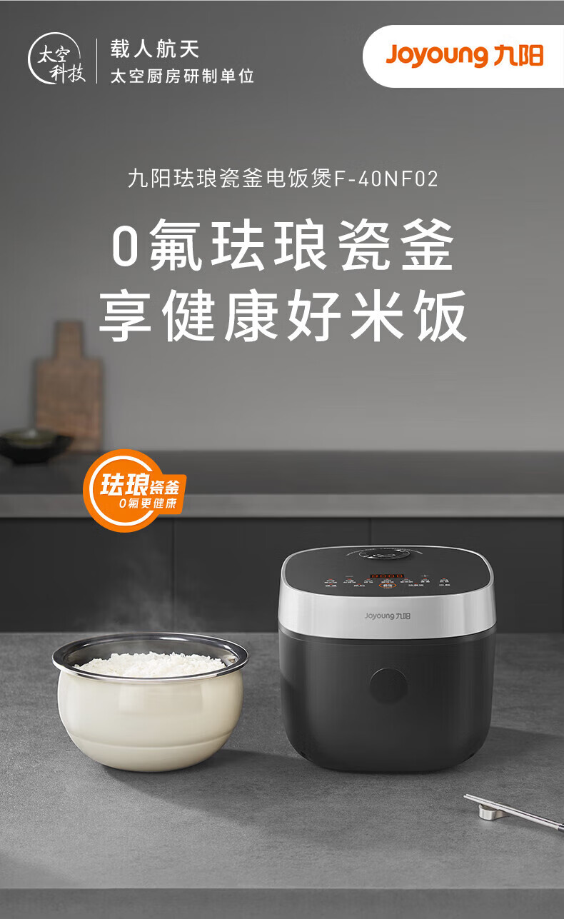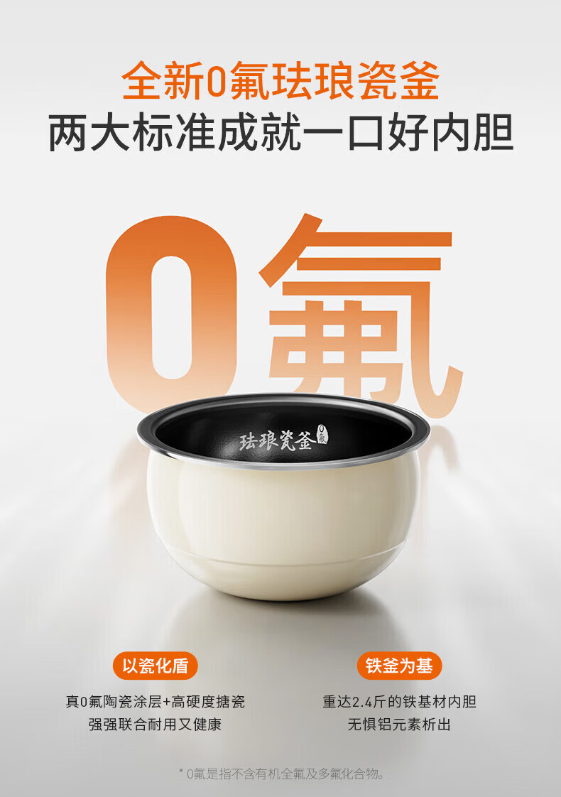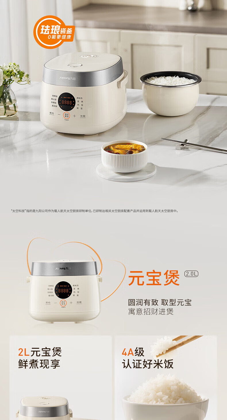 九阳电饭煲0氟珐琅瓷釜4L升家用多功能预约微压快煮电饭锅煮饭锅