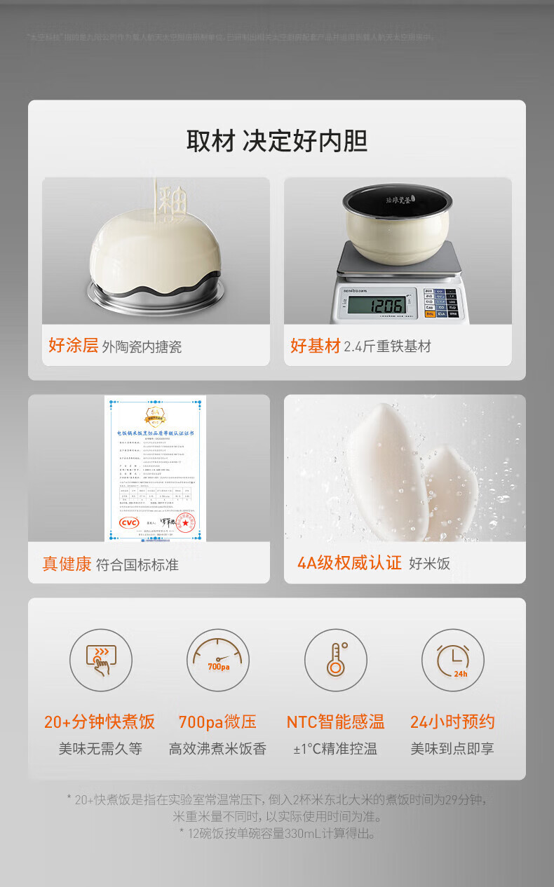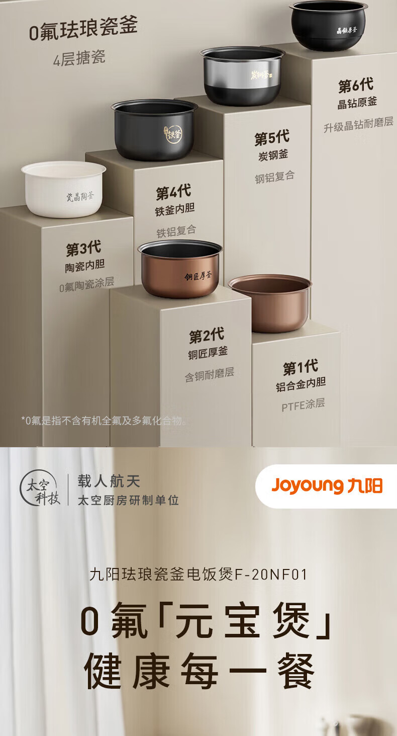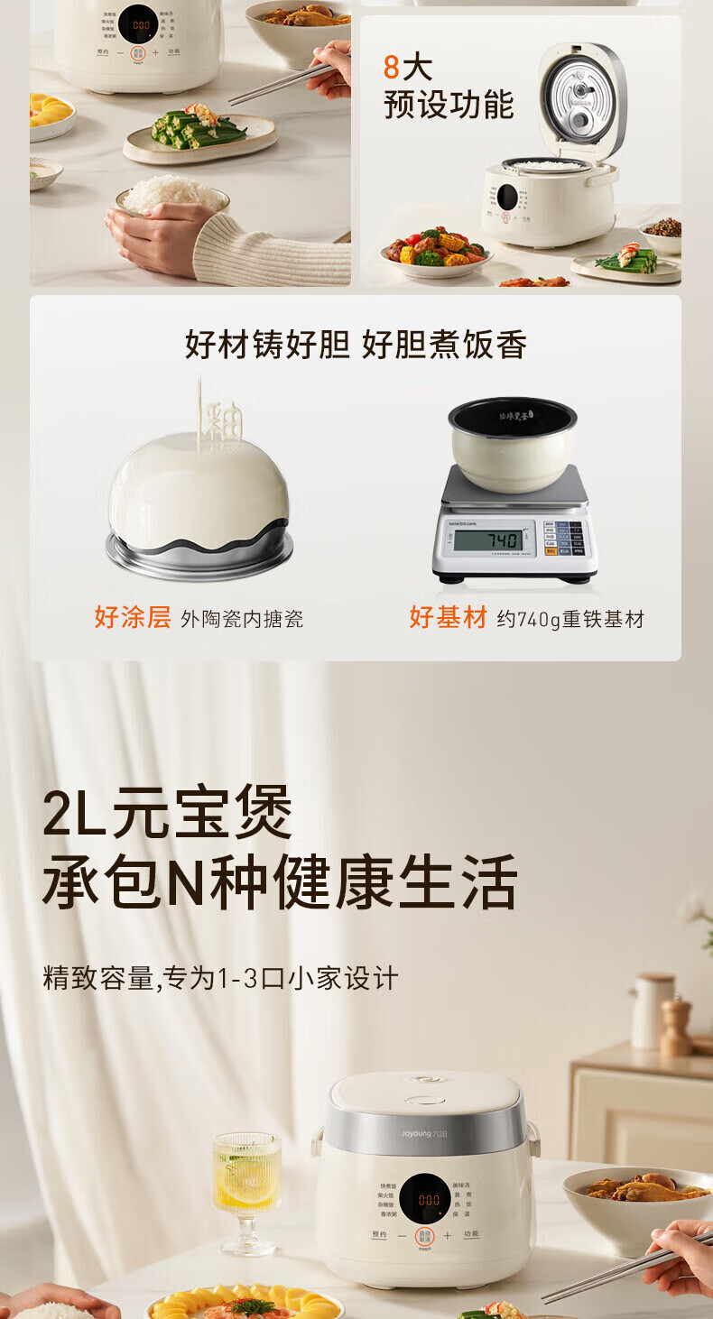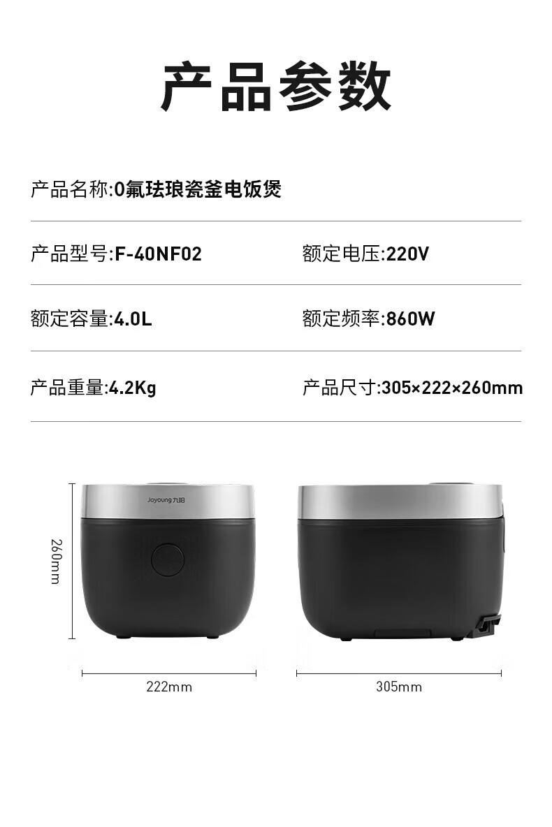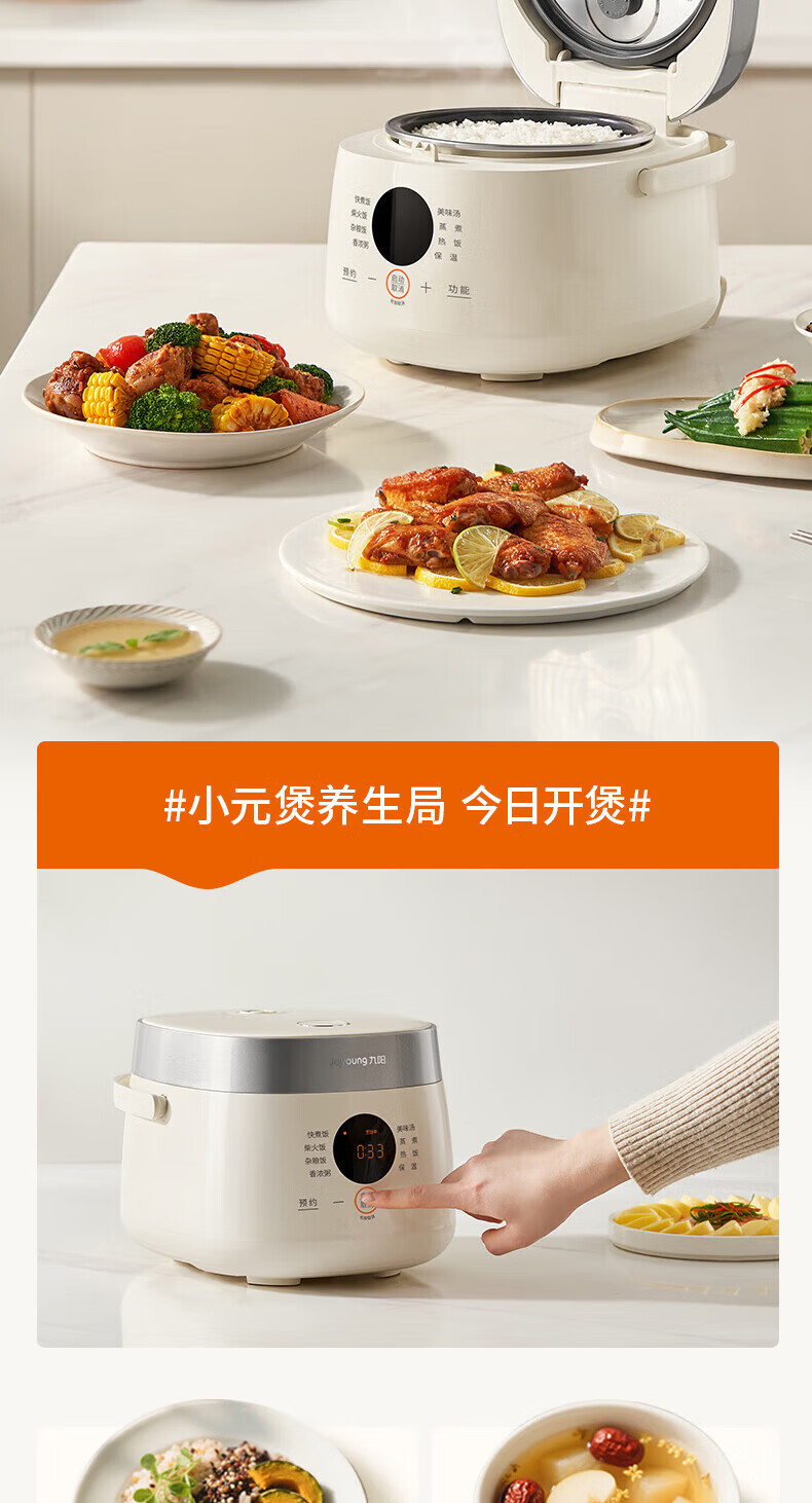 九阳电饭煲0氟珐琅瓷釜4L升家用多功能预约微压快煮电饭锅煮饭锅